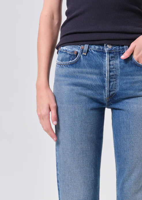 The Romney Jean features a mid-rise fit with a close-fitting top block and a quiet taper through the leg, cropped just above the ankle for a clean, elongating line. Angled set-back pockets work with the midrise to create a naturally lifted effect through the back, resulting in a universally flattering silhouette.
