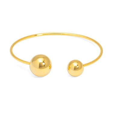 18K gold-plated cuff bracelet features an open design with two asymmetrical spheres at each end.
