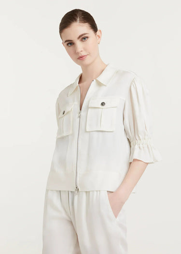 Elevate your style with the Holly Jacket. This collared jacket features a convenient zip closure and short sleeves. Crafted from luxurious cupro fabric, it's perfect for any occasion. Upgrade your wardrobe with this versatile and chic jacket.