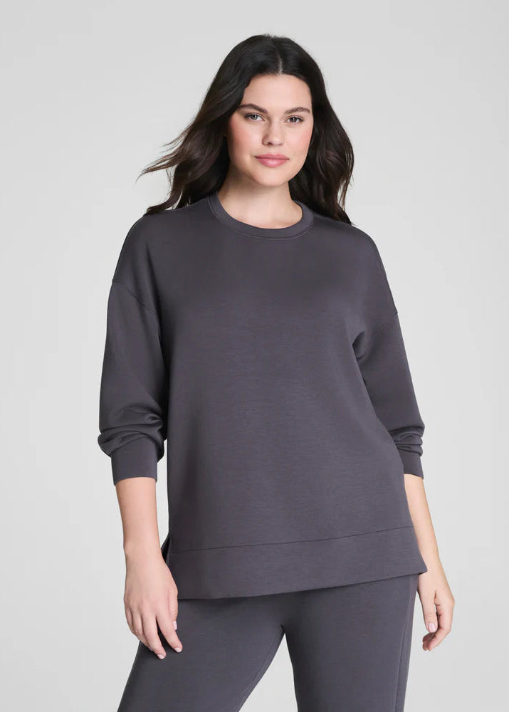 The SPANX AirEssentials® Crewneck Tunic is made with ultra-drapey spacer fabric that's breathable, light-as-air, and oh-so-soft. This versatile long layer features a relaxed fit with 4-way stretch for total comfort, a classic crewneck, and hits below the hip for extra booty coverage. Sleek, stylish, and comfortable, this throw-on-and-go top will take you anywhere and everywhere.