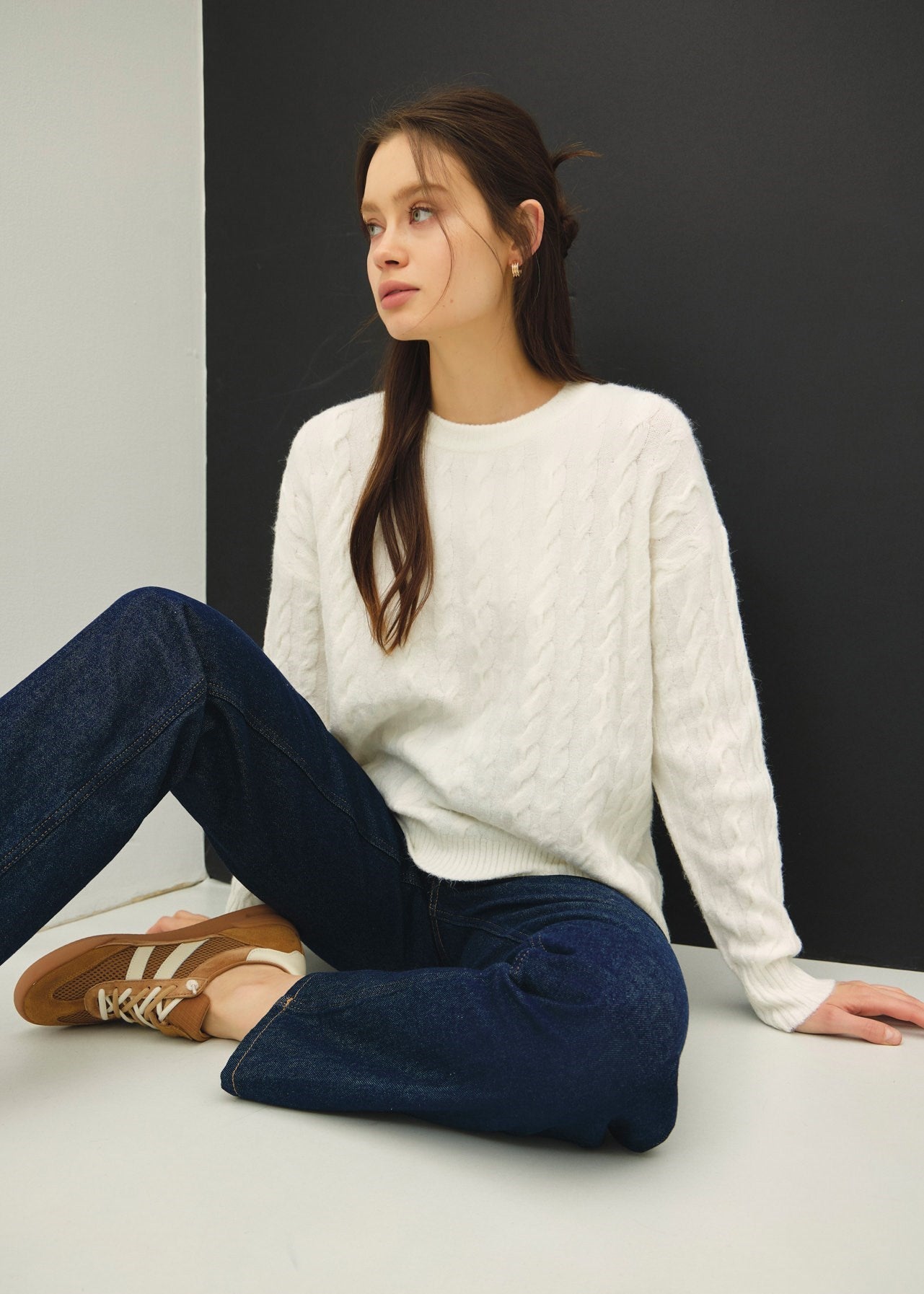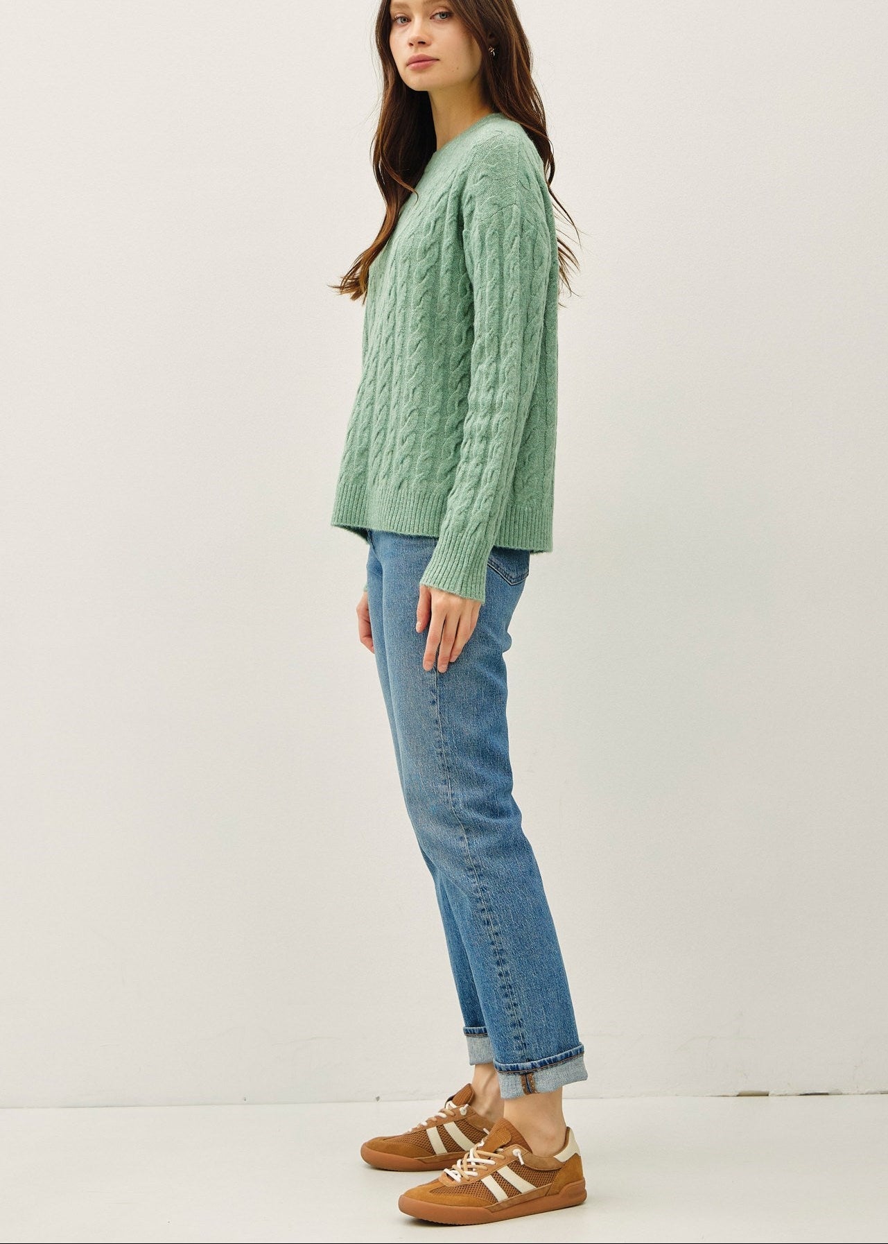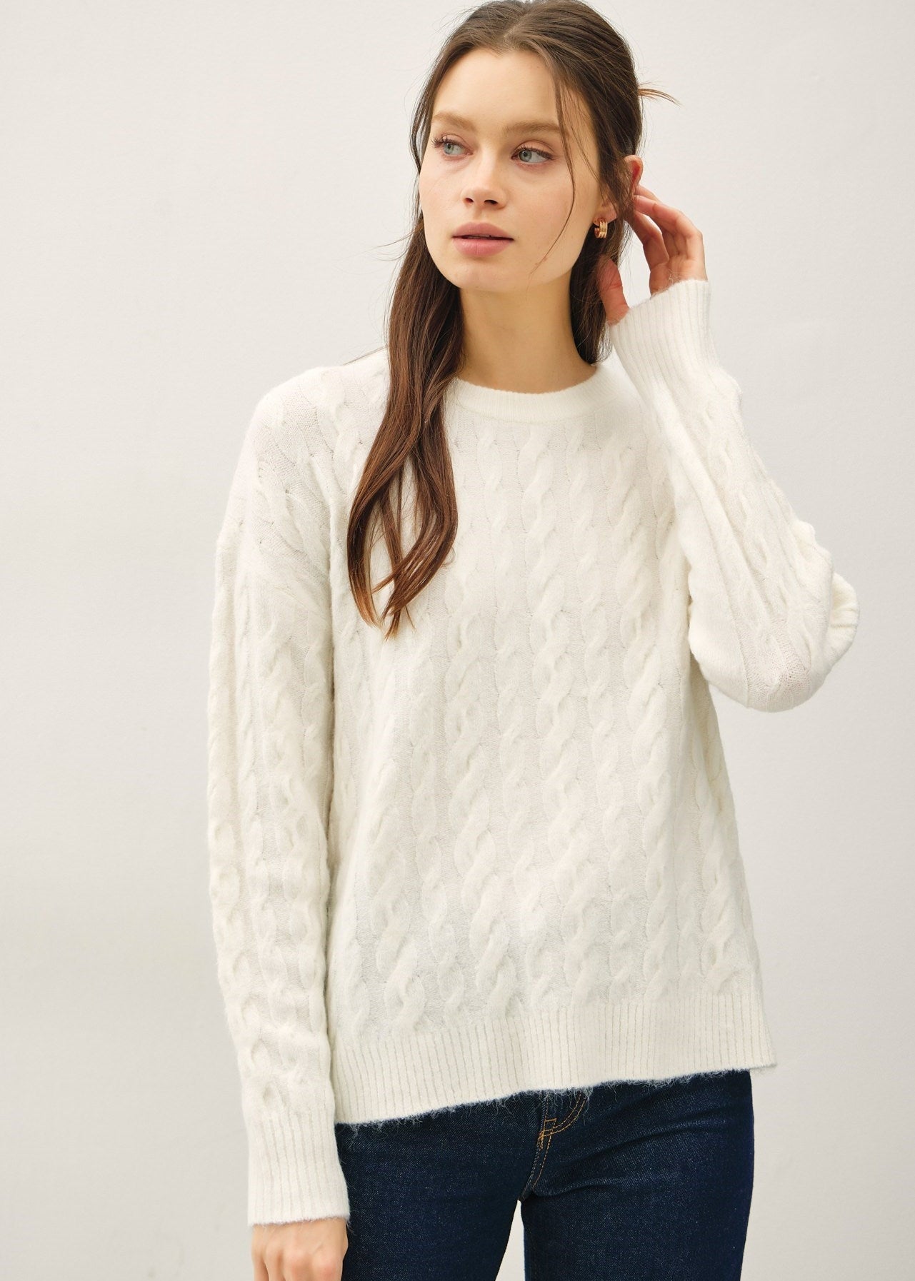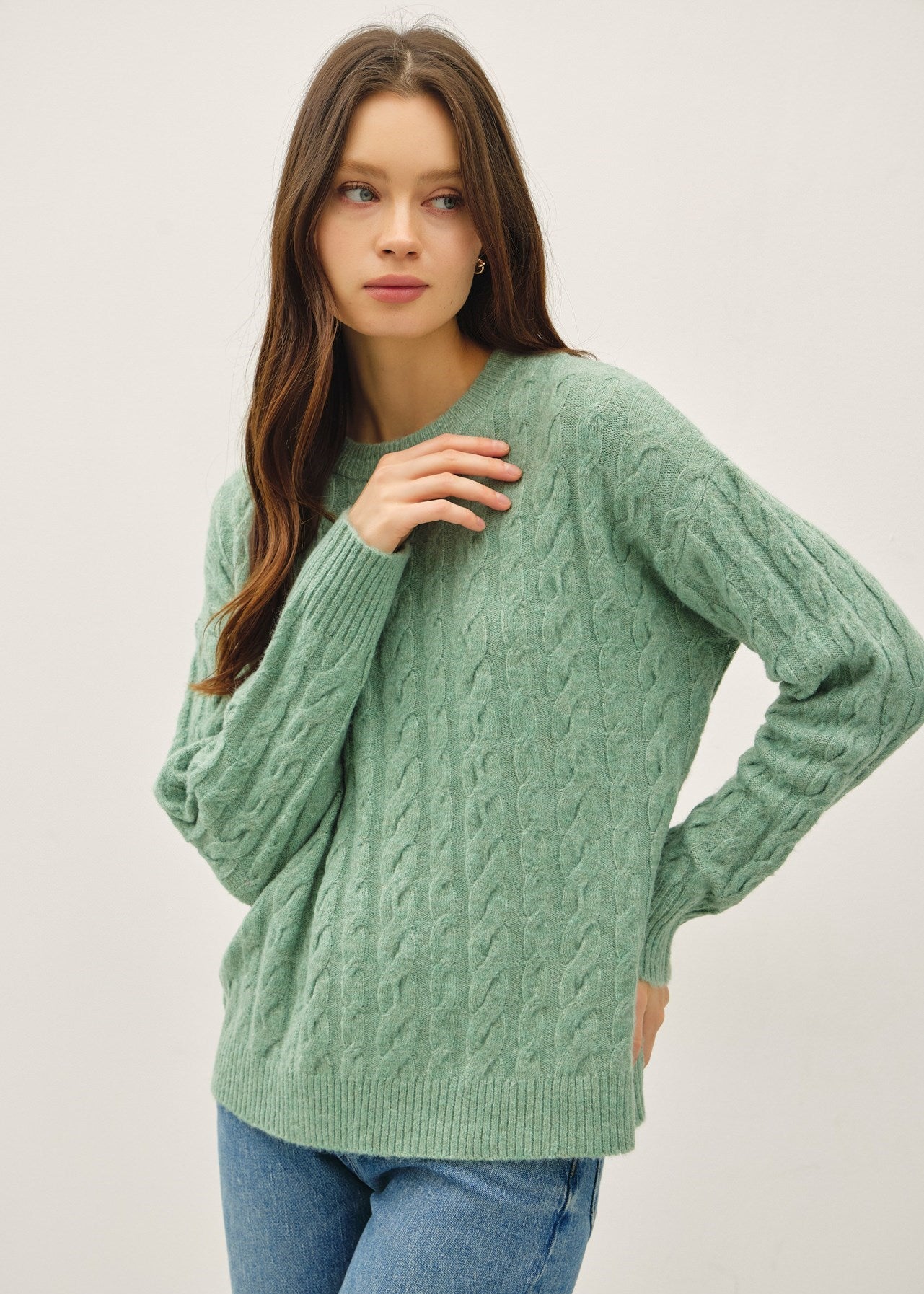 ULTRA SOFT CABLE KNIT CREWNECK SWEATER TOP