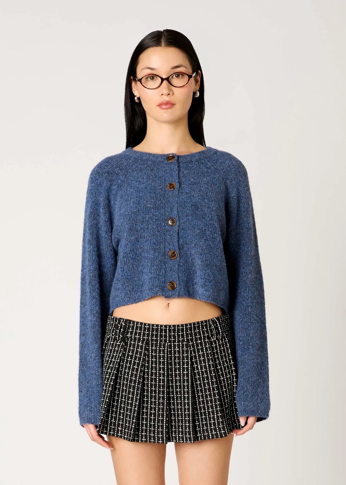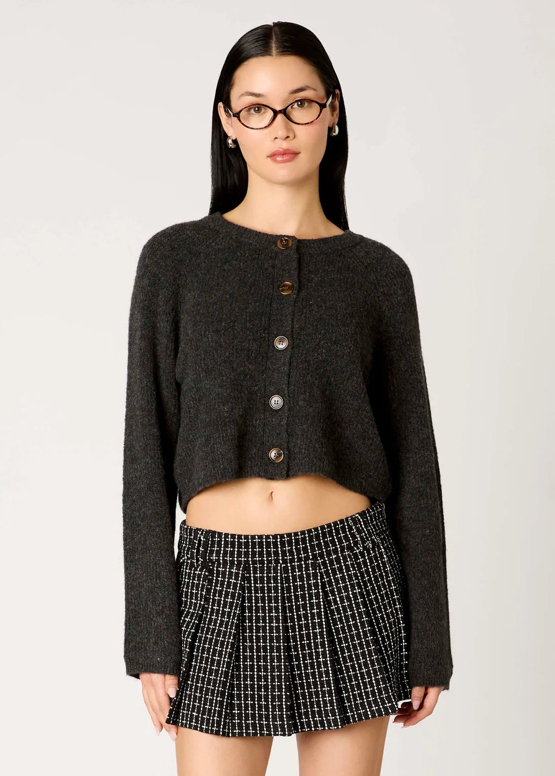 The Lisa Sweater is a cropped cardigan with a slightly boxy silhouette that hits just above the waist. Designed with a clean round neckline and finished with a classic front button closure, it’s the perfect light layer for transitional weather. Whether worn closed or styled open, this easy pullover adds structure without the bulk.