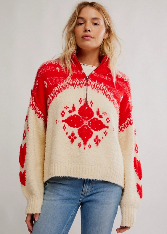 Cozy nights and festive feels, this slouchy sweater features a soft knit fabrication and an oversized, quarter-zip-inspired silhouette, creating the perfect laidback layer.