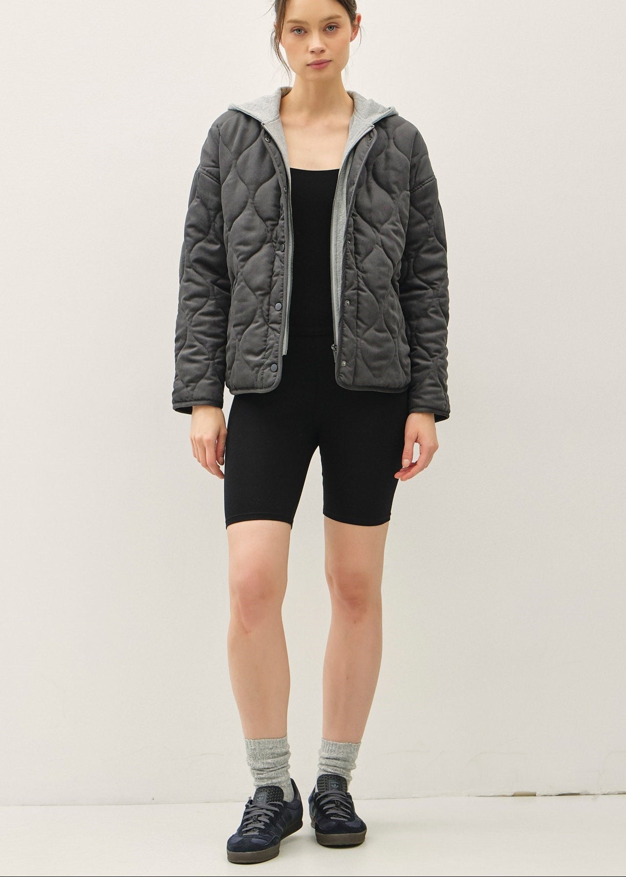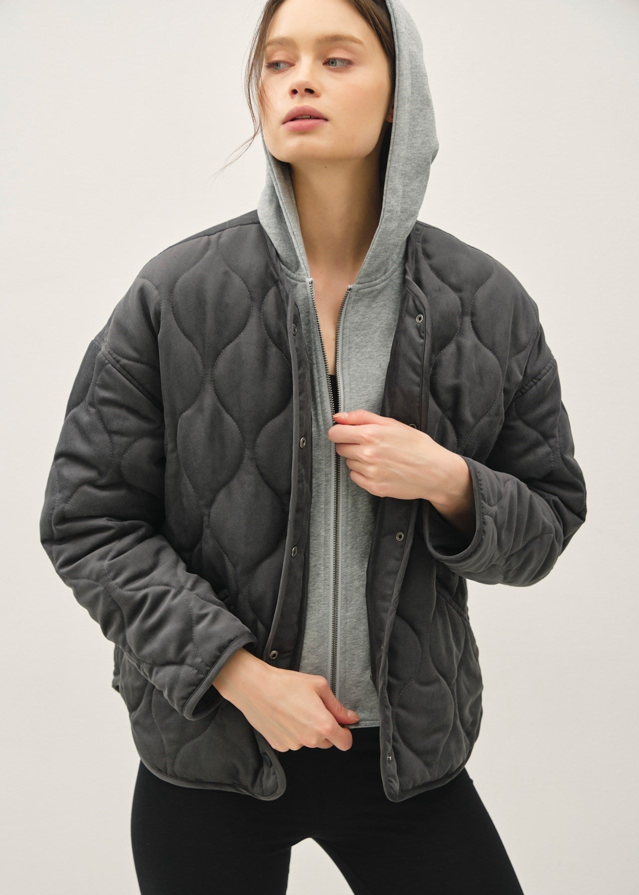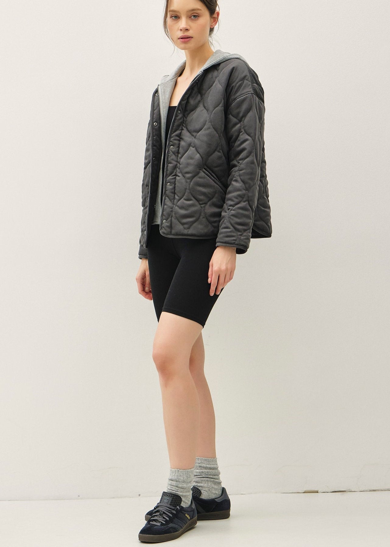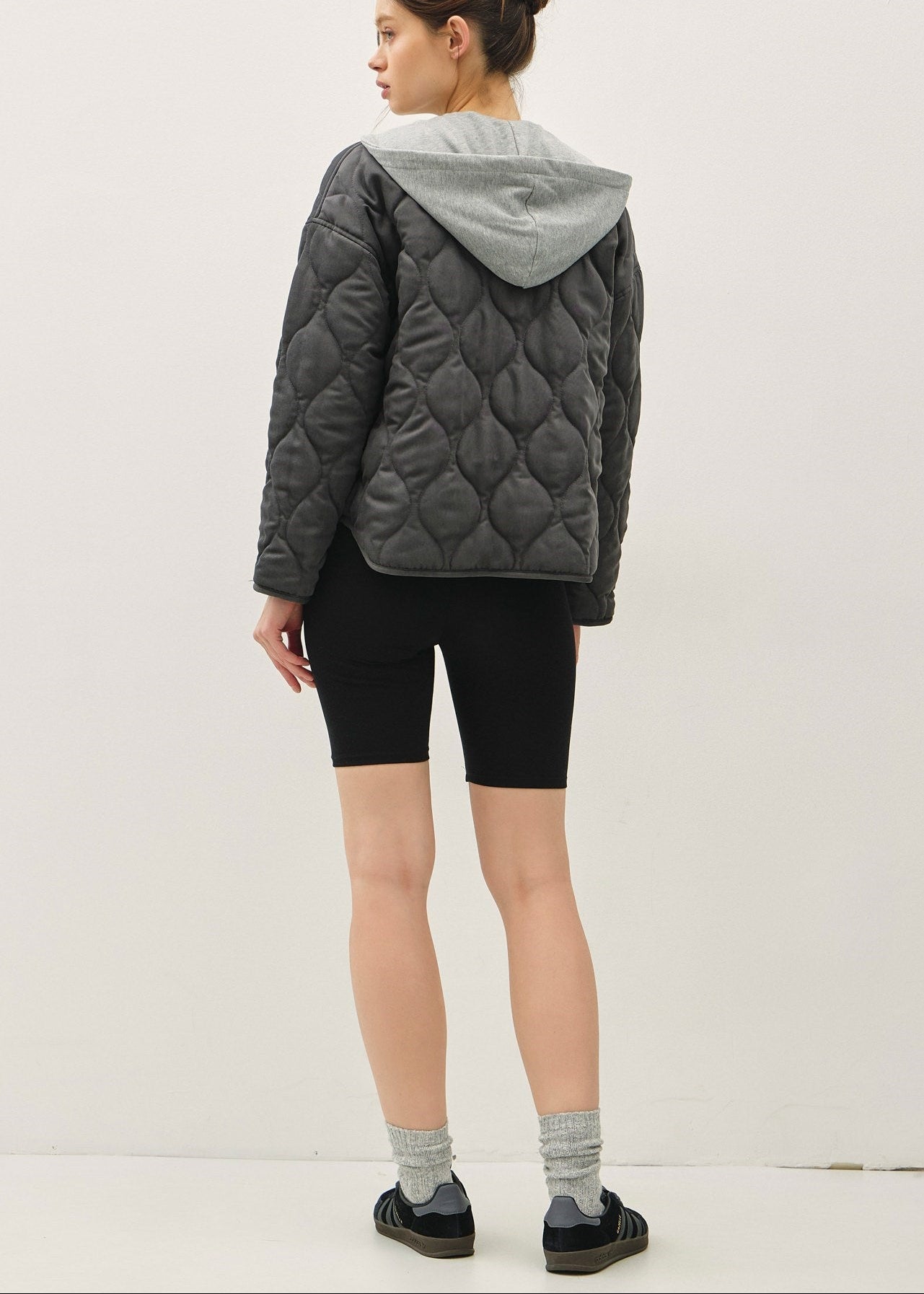 QUILTED JACKET WITH ATTACHABLE CONTRAST HOOD