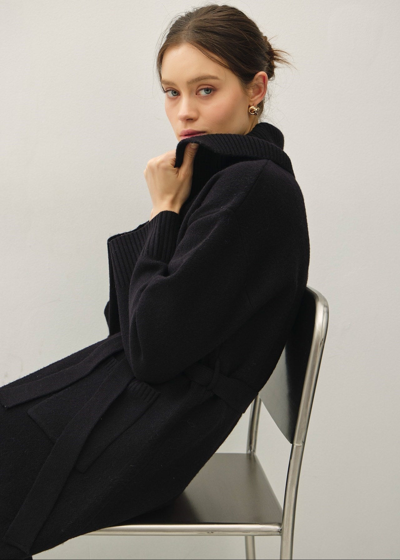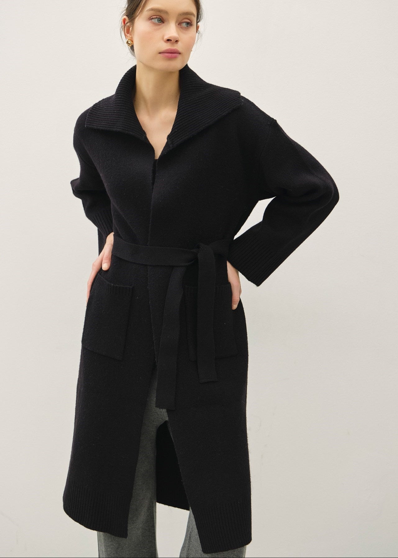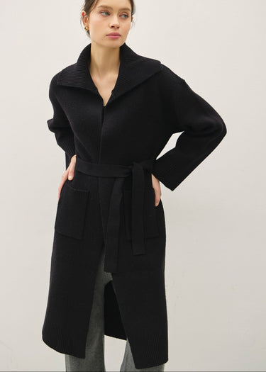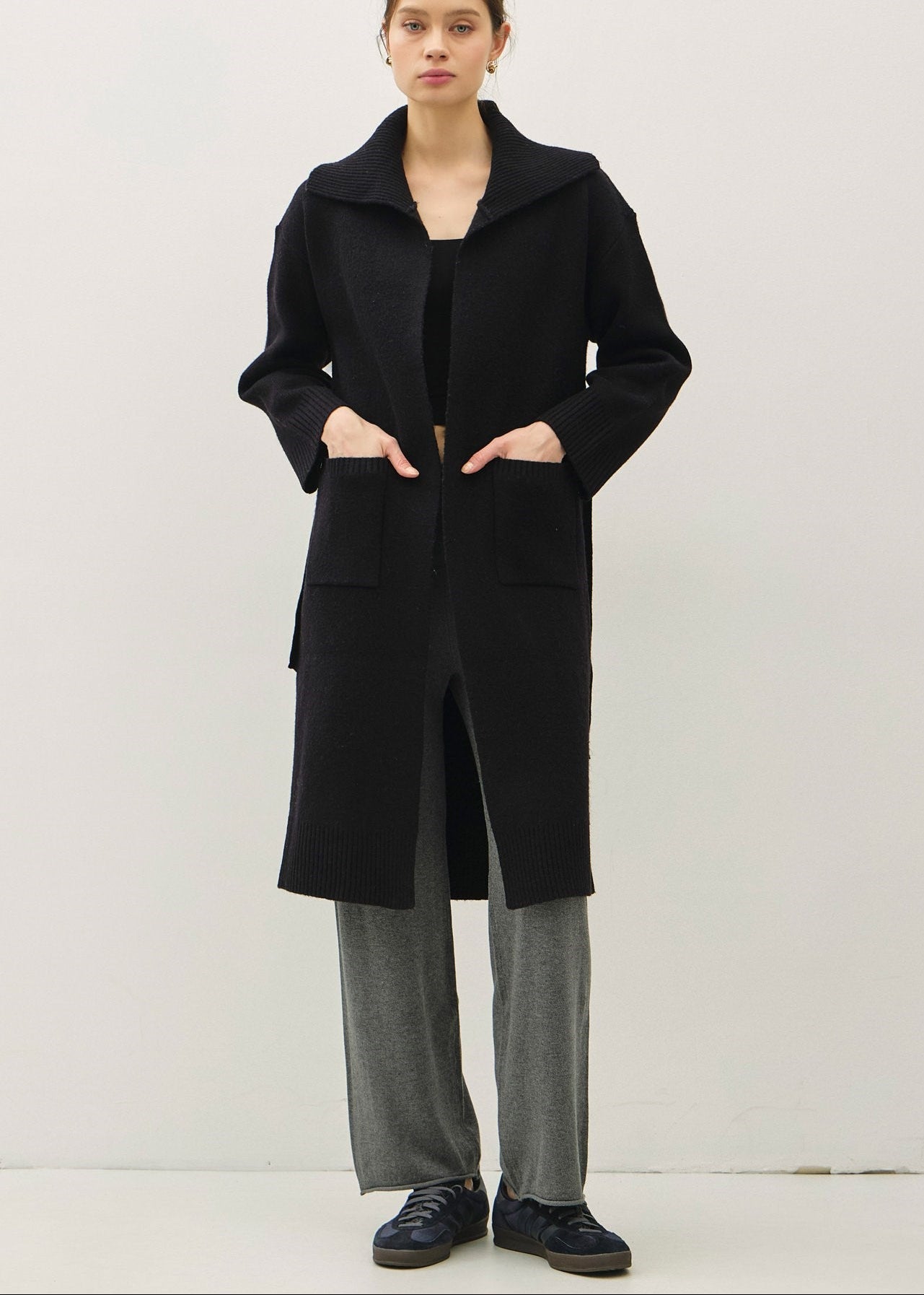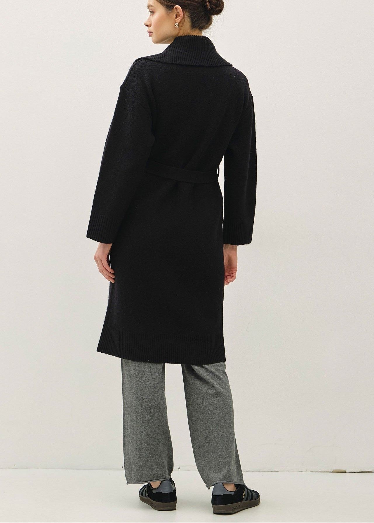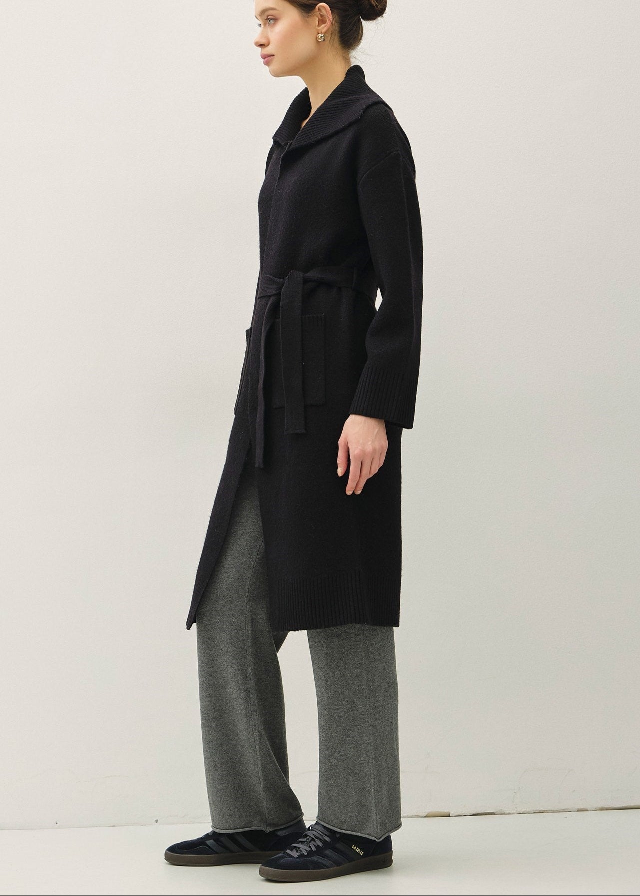 WOOL COATIGAN WITH LARGE RIBBED COLLAR