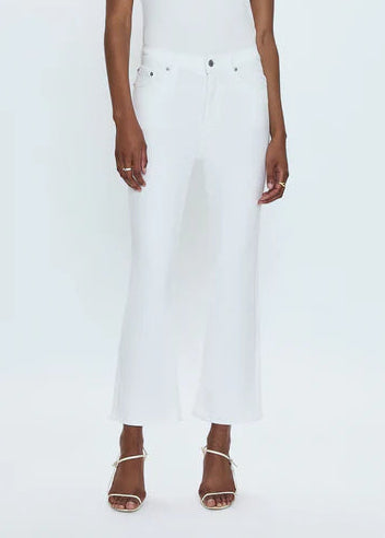 A pair you'll get endless wears out of. In a boot cut fit, it hugs you from the hips to knee and flares out at the calf for a proportional effect. Featuring a sandy whitewash with contrast stitching, the high-rise jean fits a polished, yet relaxed dress code.