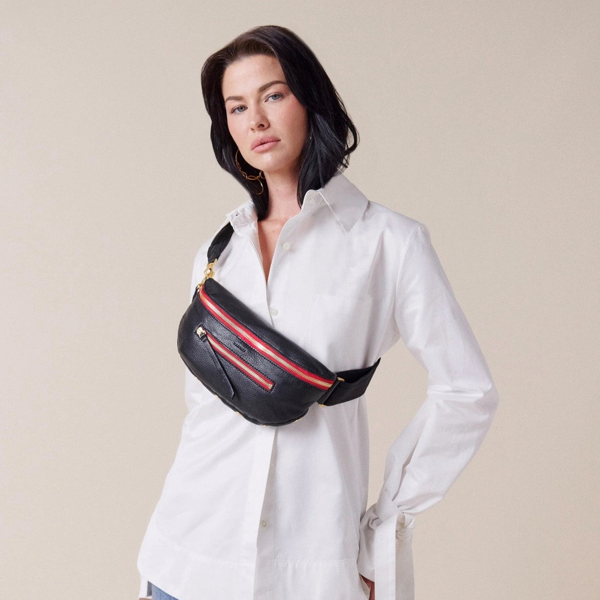 This belt bag embraces the crossbody styling with a longer strap for more looks. This crossbody bag can be worn as a sling so you can go hands-free. The strap can be double looped for a belt bag style around your waist as well!