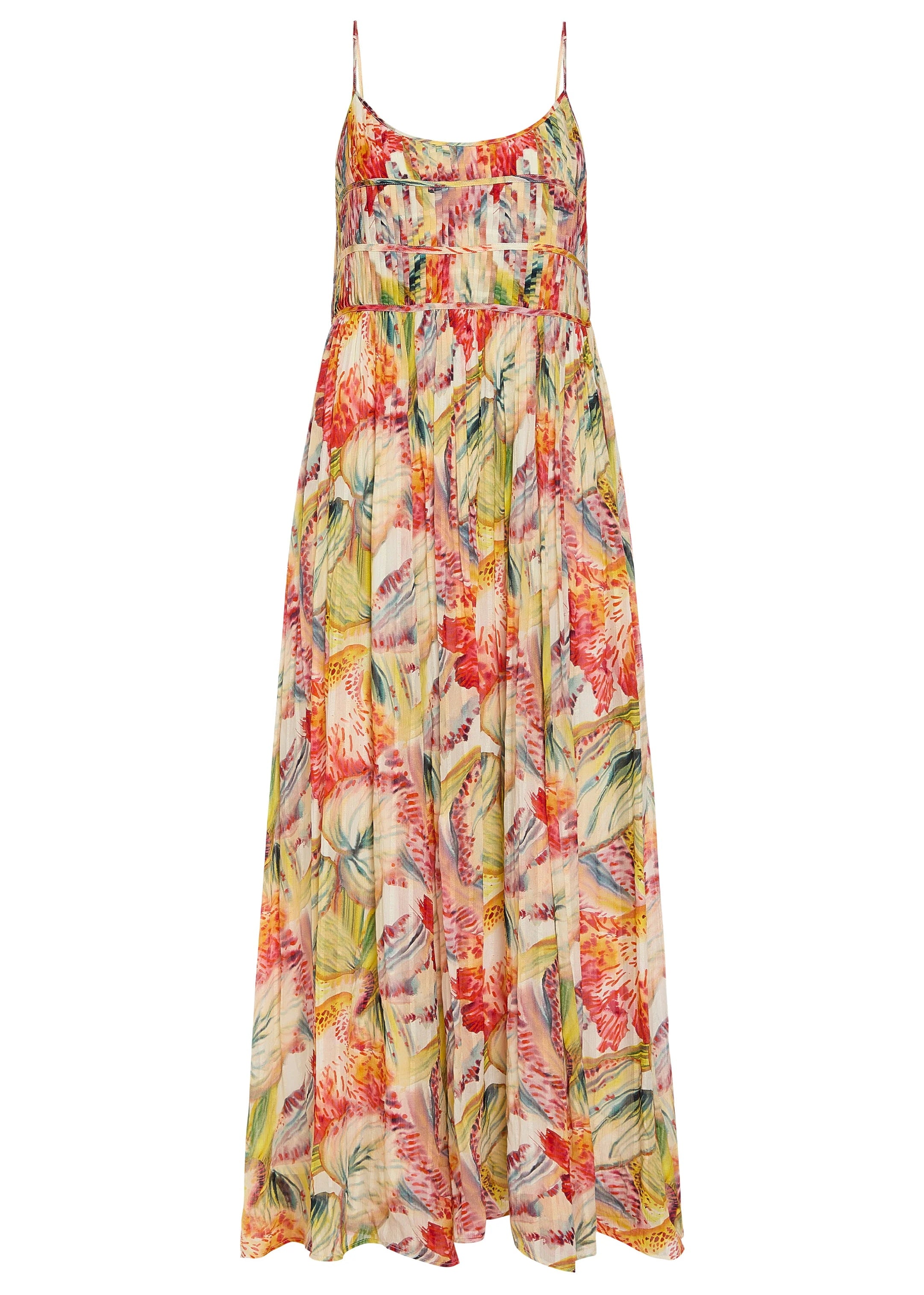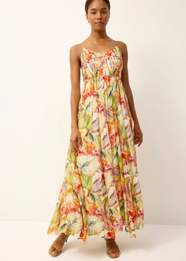 A true standout for the season, the Bailey maxi dress pairs a softly structured bodice with a flowing skirt in a vibrant botanical print. Delicate straps and horizontal seam detailing frame the neckline, while gentle gathers release into a full, movement-filled silhouette. Bold yet effortless, it’s made for destination weddings, garden parties, and any occasion that calls for color and confidence.