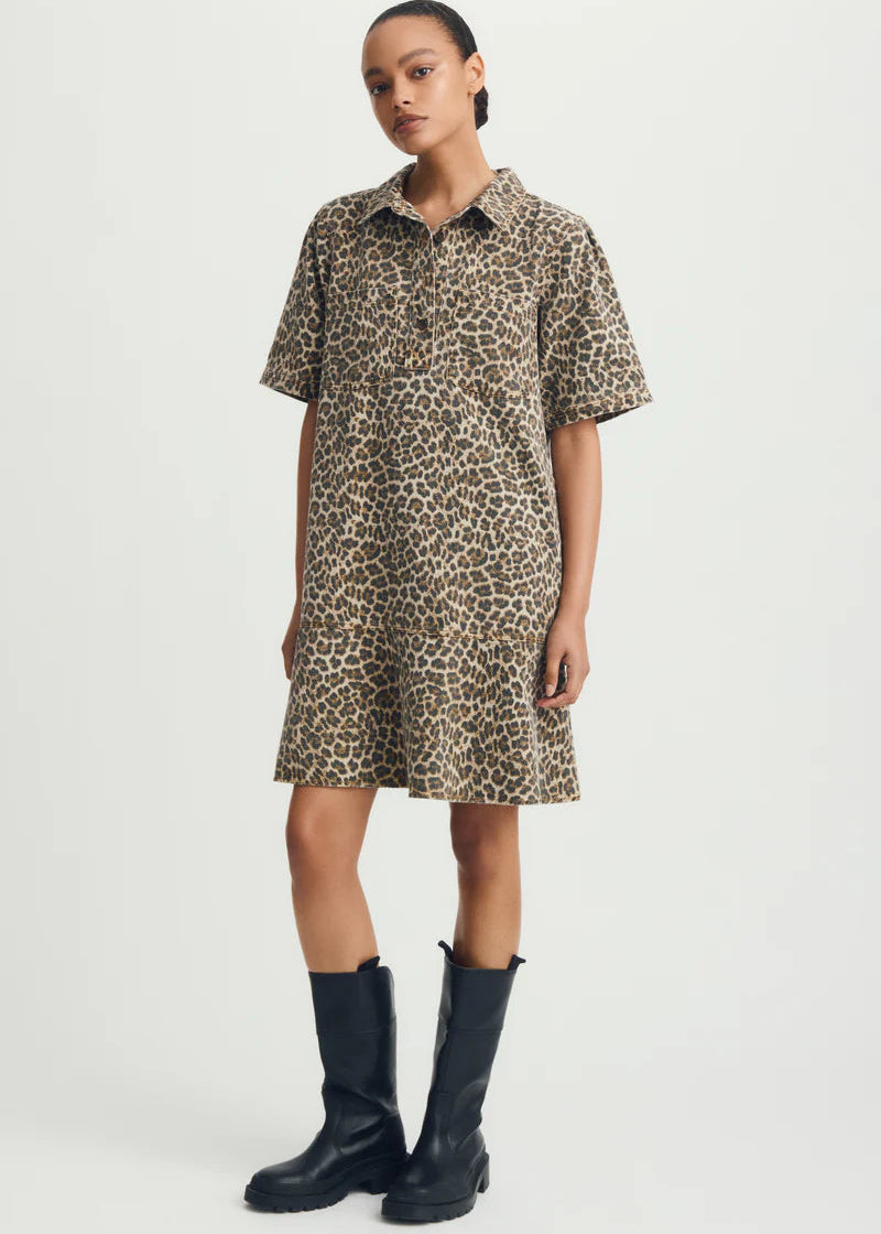 HALF PLACKET SHORT SLEEVE SHIRT DRESS