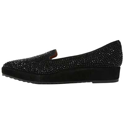 Smoking slipper style with a fun attitude with beautiful stone embellishment. Find all day comfort with the adaptable memory foam arch support designed to expand and contract with the contours of your feet. Full sheep nappa lining added for breathability and comfort.