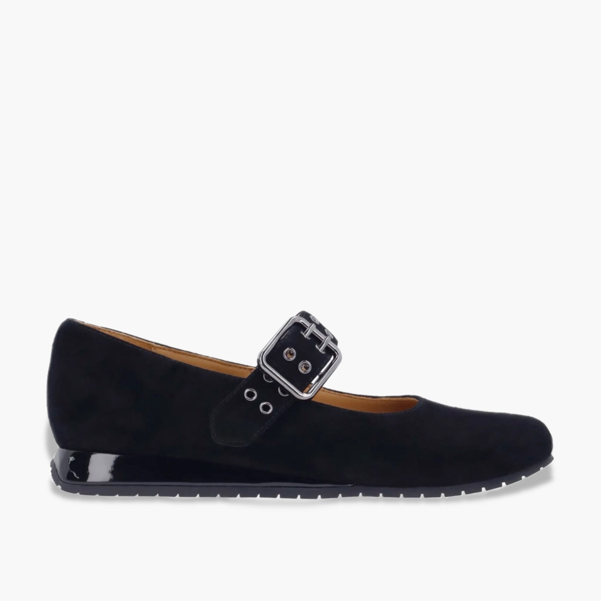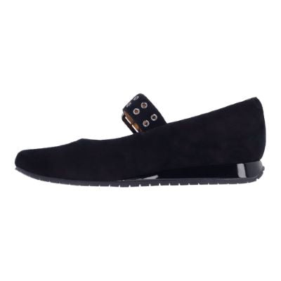 This pump has a square toe, memory foam insole, leather lining and synthetic outsole. This style also features a hook and loop closure on a 1.25 inch heel.