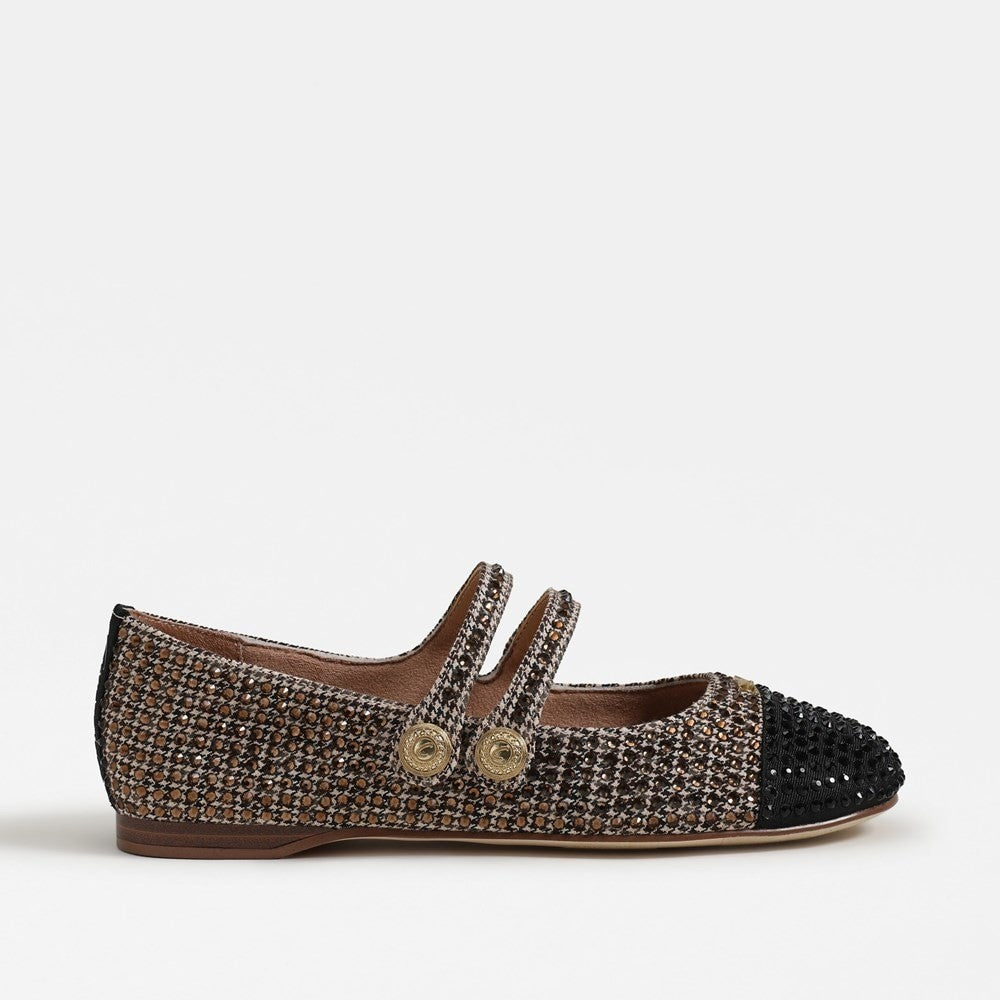 Introducing Zoey - an all-over crystal detail takes this style from schoolgirl to cool girl. The Zoey Mary-Janes feature a contrast cap-toe and double-strap detail. The Zoey is your new go-to for all occasions.