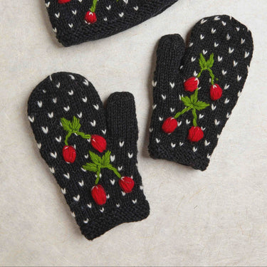 Introducing the Cherries Mittens, where the beauty of nature's cherry meets vintage polka dots for a design created to add warmth and charm to your ensemble.
