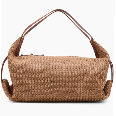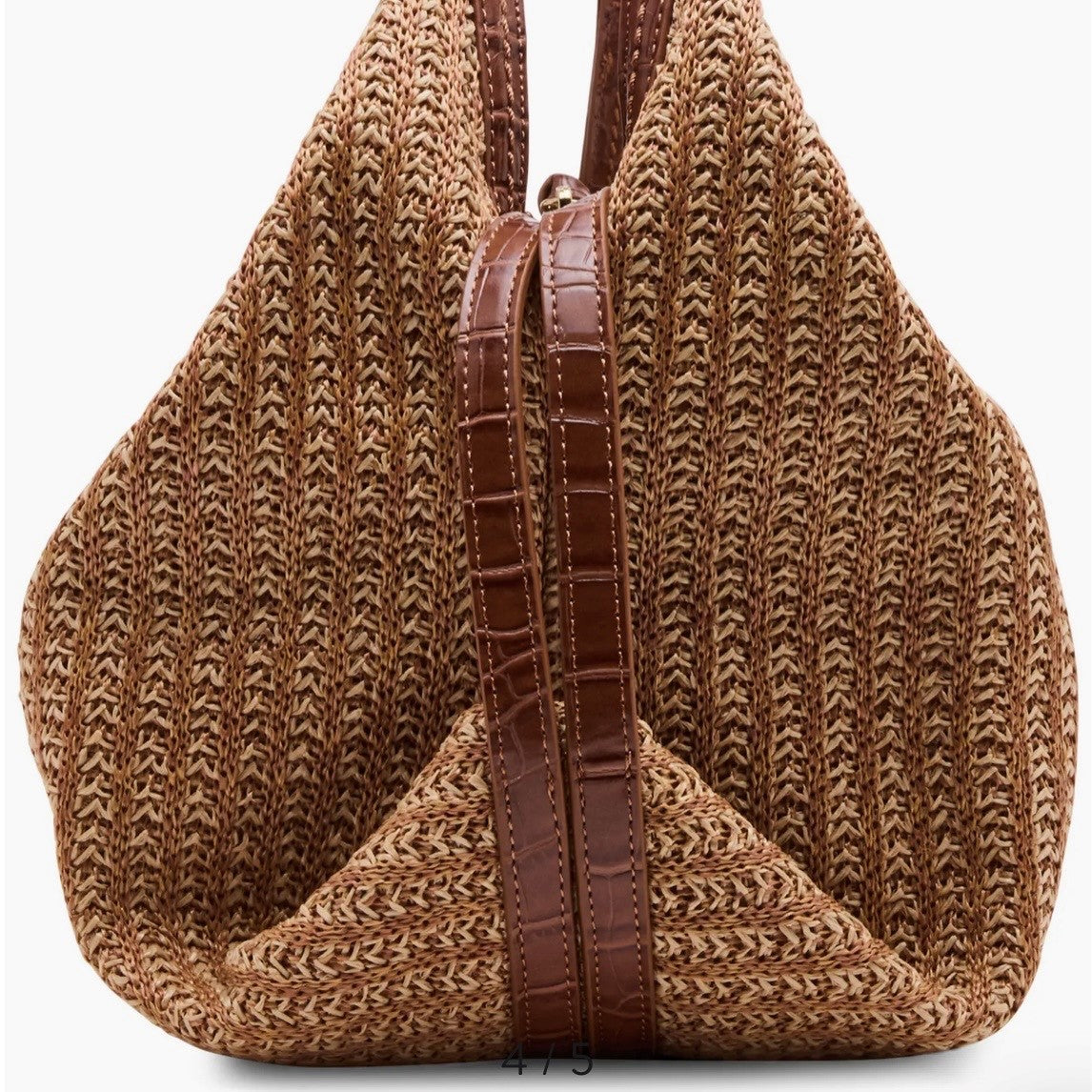 Topped with dual handles that fit perfectly in the crook of your arm or over your shoulder, this woven faux-leather bag has plenty of pockets inside to keep belongings organized.