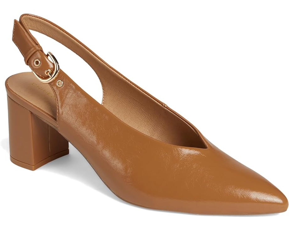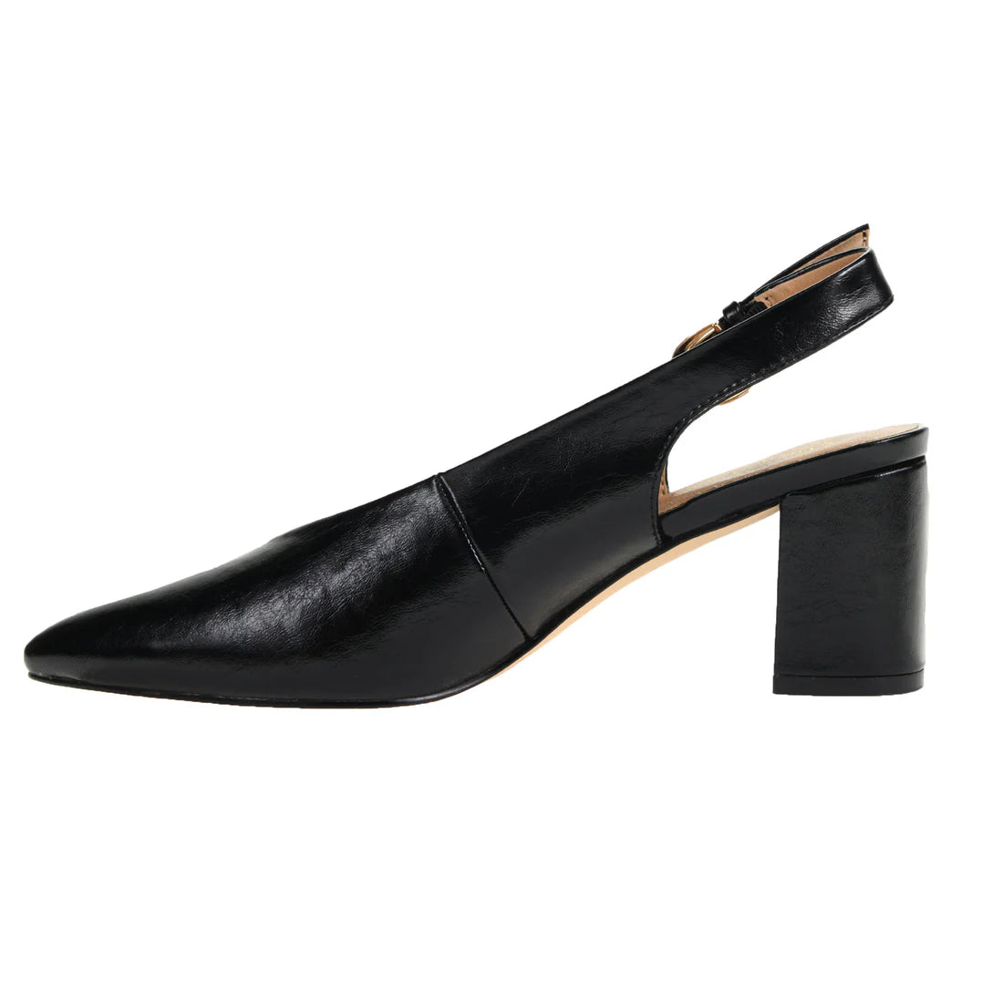 The Menny slingback pump is ideal for the discerning woman who approaches her footwear as timeless yet rebellious. Featuring a sleek pointed toe with a high cut vamp, these slingbacks will instantly break the mold.