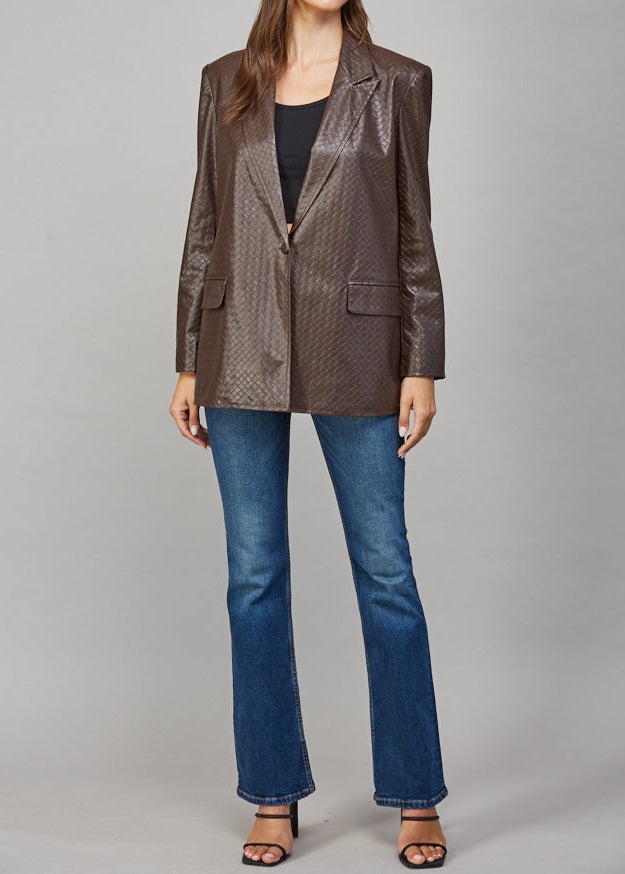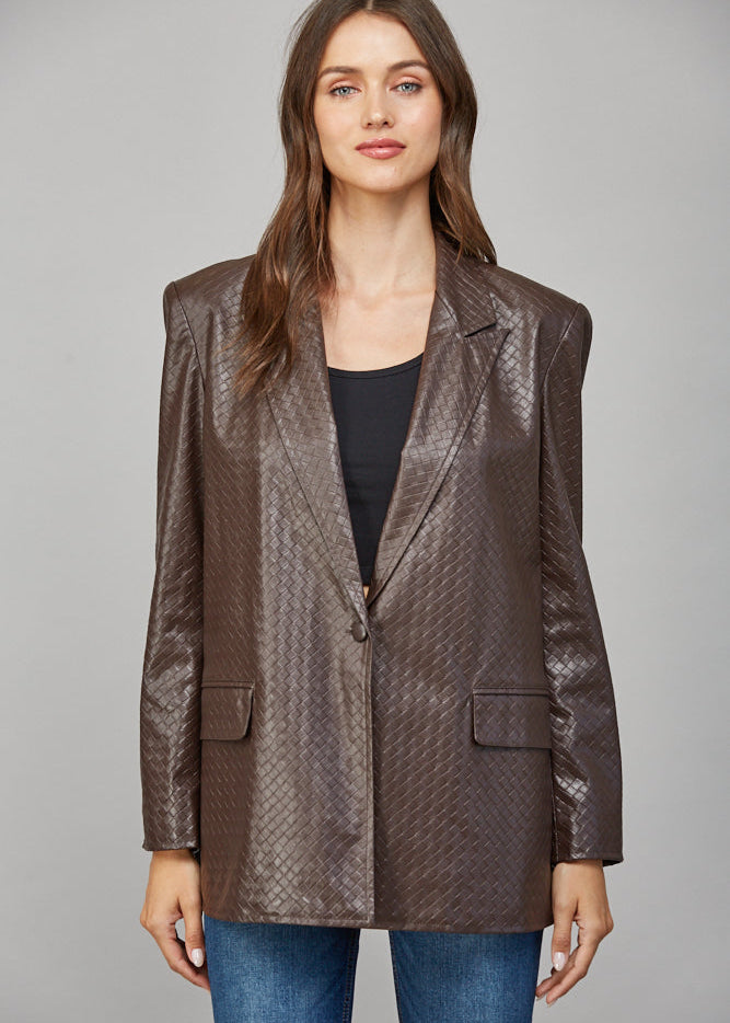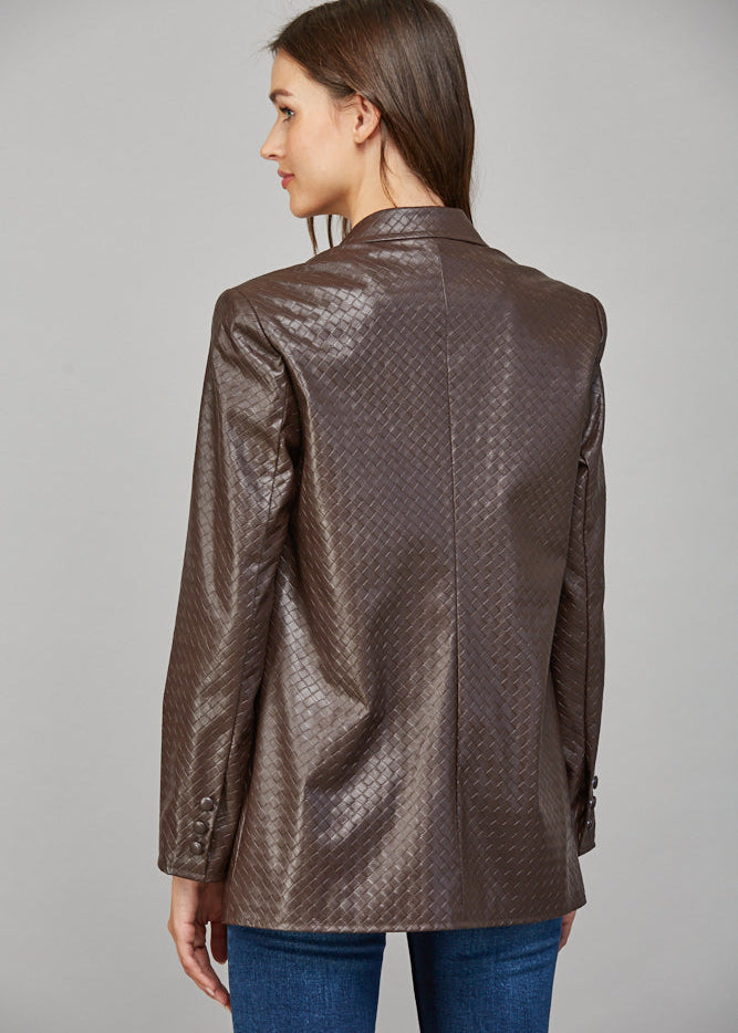 CRISSCROSS PATTERN FAUX LEATHER BLAZER