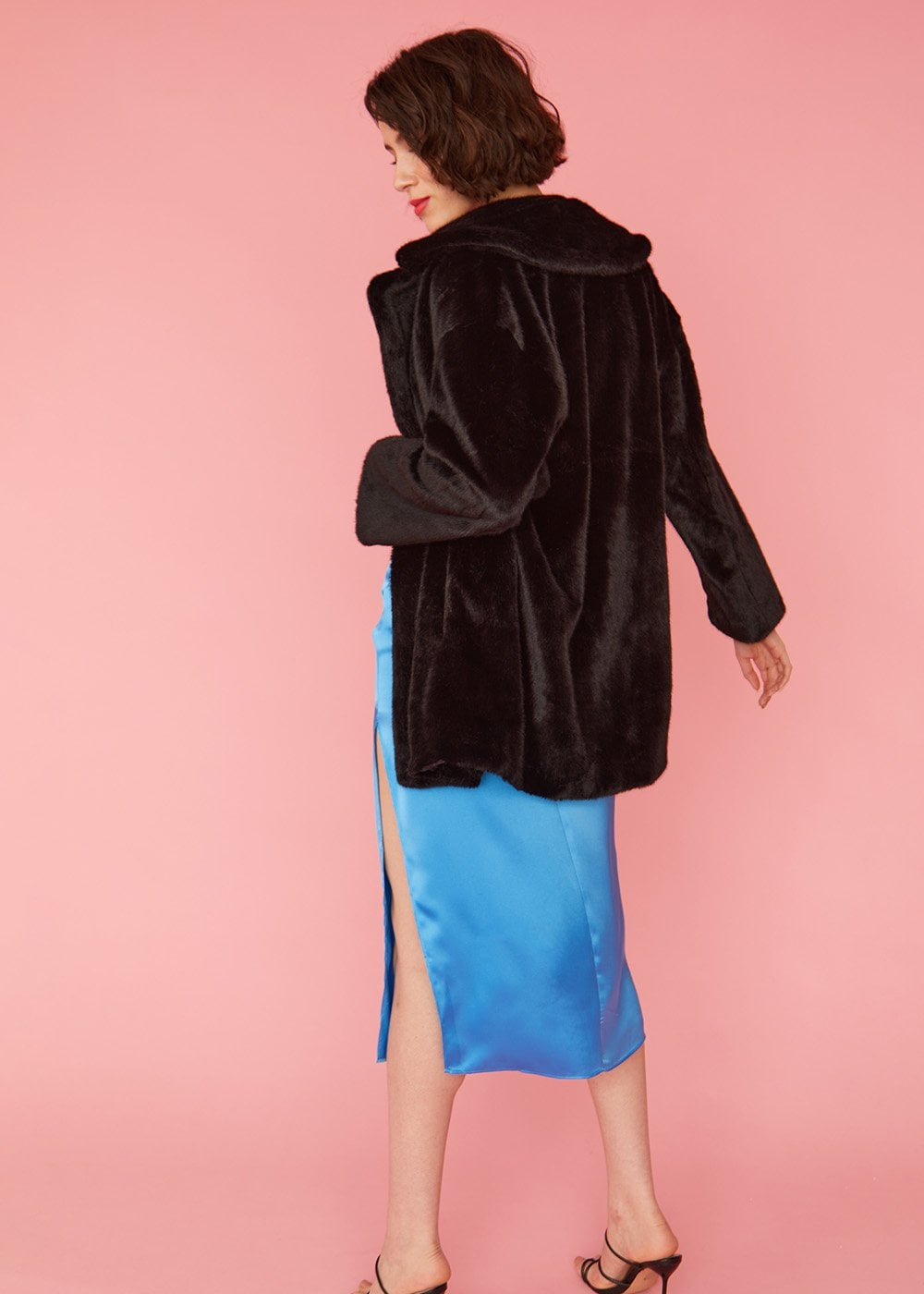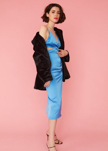 Cut to a flattering mid-length this faux fur coat is a timeless piece that's associated with glamour and elegance. Featuring side pockets, full lining and peaked lapels, this coat is made to be worn open, and to accentuate your below dress or pair or trousers.