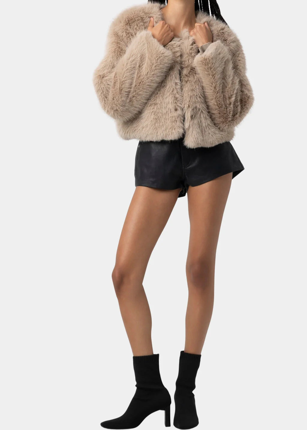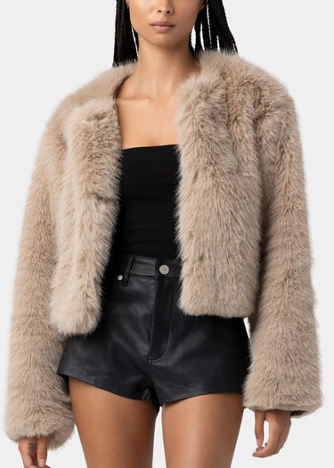 Step out in unmatched style with this captivating jacket. The collarless, cropped design gives it a fresh, of-the-moment look, while the soft faux fur adds an element of pure luxury. Perfect for layering, it's the perfect piece to add an unexpected, fashion-forward twist to your wardrobe.