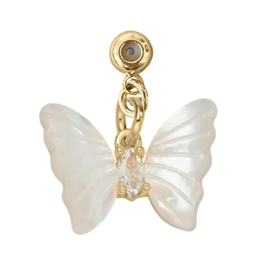 Embellish your wrist or neckline with thr Butterfly Pearl Grip Charm. Exquisitely crafted, the blend of pearl and crystal radiates a soft glow while the gold accents add a smooth finish.