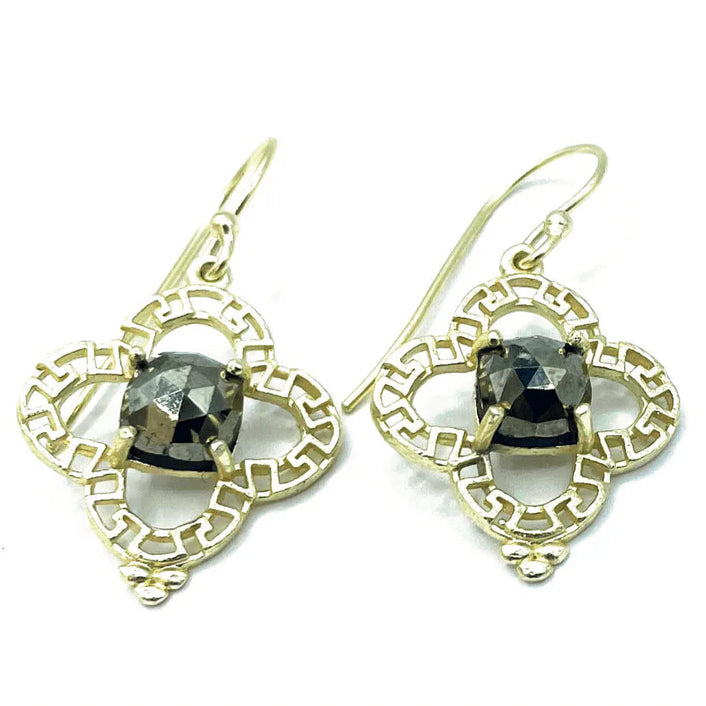 These 24k gold-plated sterling silver earrings feature a natural pyrite stone at their center. Stunning! And light as a feather.
