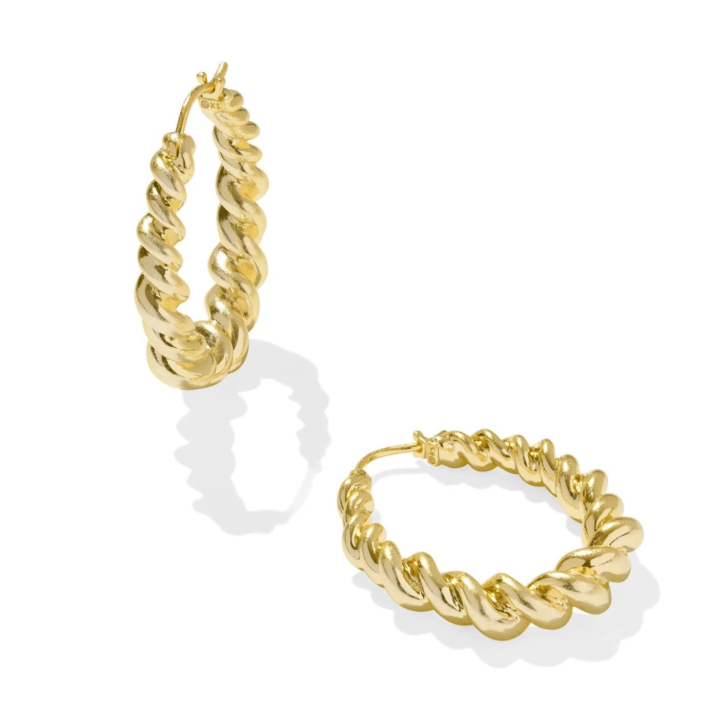 The Haisley Hoop Earrings are about to be your newest obsession. A callback to vintage hoop designs, these earrings feature a silhouette inspired by twisted ribbons that gives them a beautiful, dimensional shine.