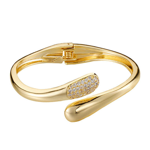 Gold Plated Spring hinge raindrop wrap bangle with Pave
