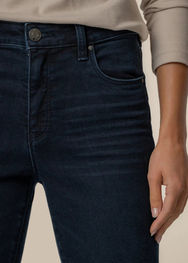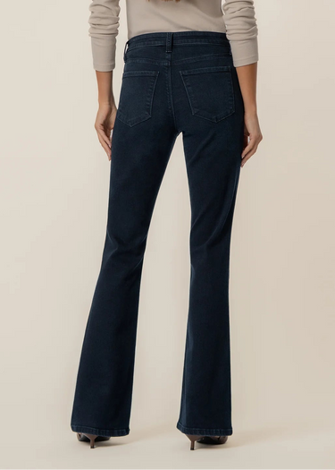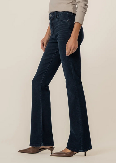Elevate your everyday look with these high rise flare leg jeans, designed in a classic Euro wash for timeless style. Crafted from a very stretchy material, they offer a comfortable, sculpted fit that moves with you. Featuring Fab Ab front pockets for a smooth, flattering silhouette, these jeans are the perfect blend of style and support.
