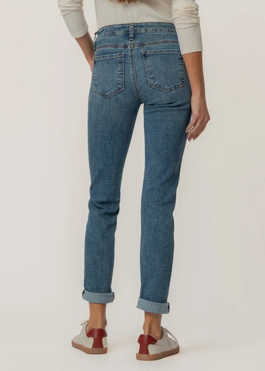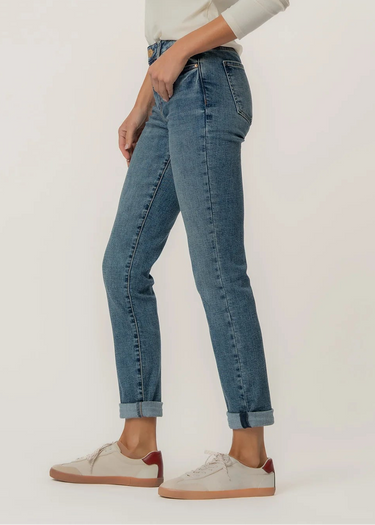 These mid-rise boyfriend jeans in a relaxed fit and classic medium wash are made from super stretchy fabric for ultimate comfort. Easily roll them up or down to switch up your look from casual to cool in seconds. Perfect for laid-back days with effortless style.