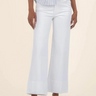 These pants are cut in a pintuck-detailed, wide-leg silhouette from stretchy denim, offering both comfort and style. The wide hem adds a bold, fashion-forward touch.