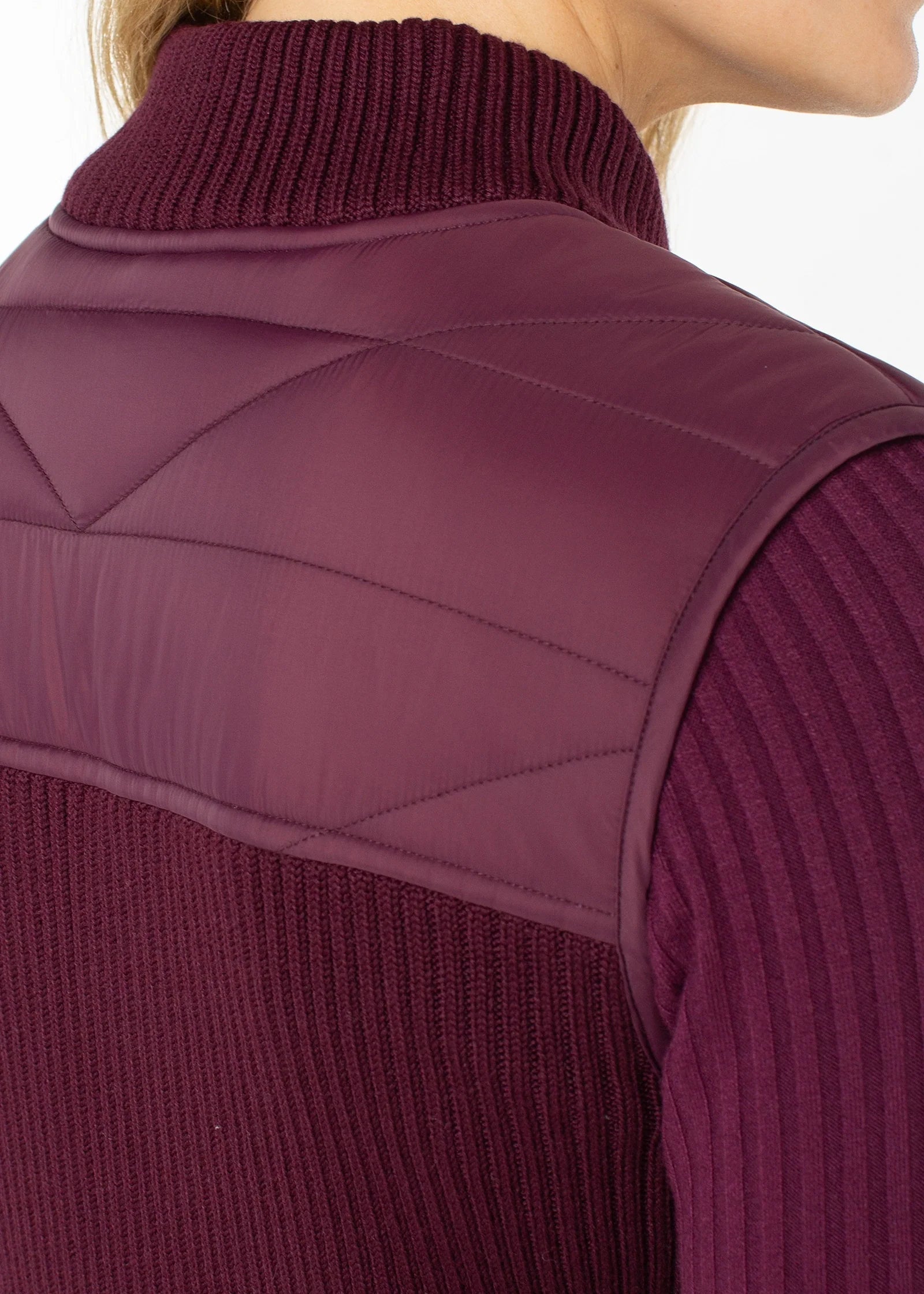 This quilted sweater vest combines the structure of a puffer with the softness of knitwear for effortless, all-day comfort. Designed to add dimension without bulk, it’s the ideal piece to style over a long sleeve knit for a polished, transitional look.