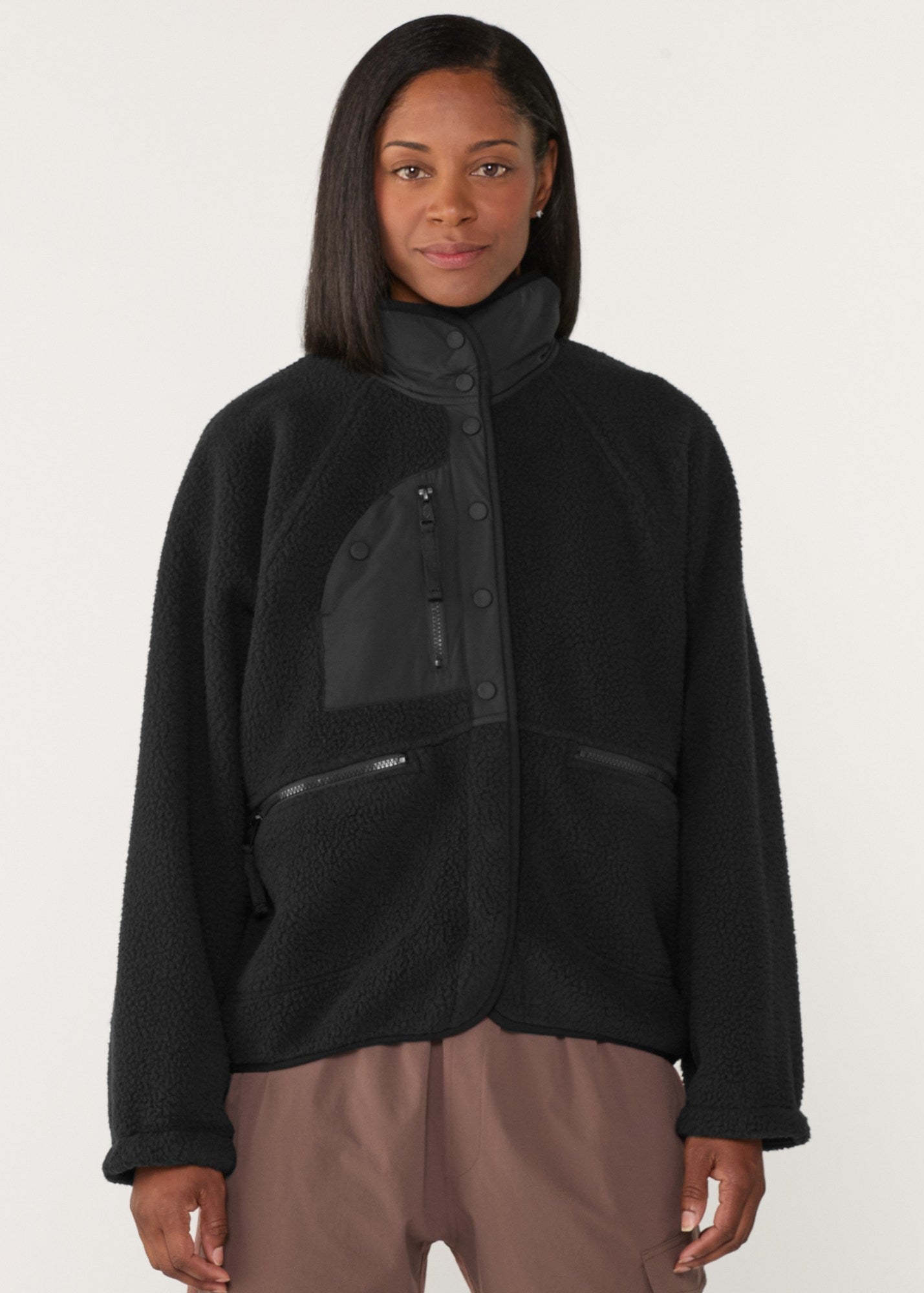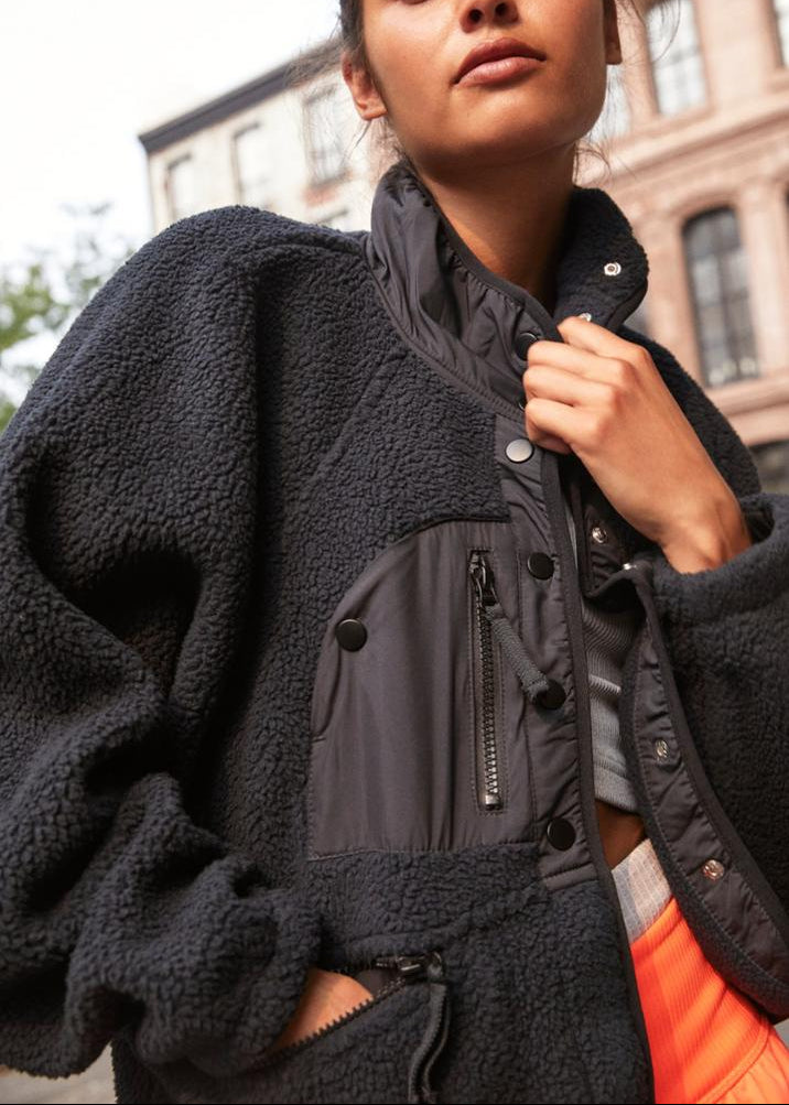 Perfect for layering on easy hikes or throwing on after the gym, this FP Movement jacket is made with fuzzy fleece. Zippered pockets give you a spot to stash your around-town essentials.