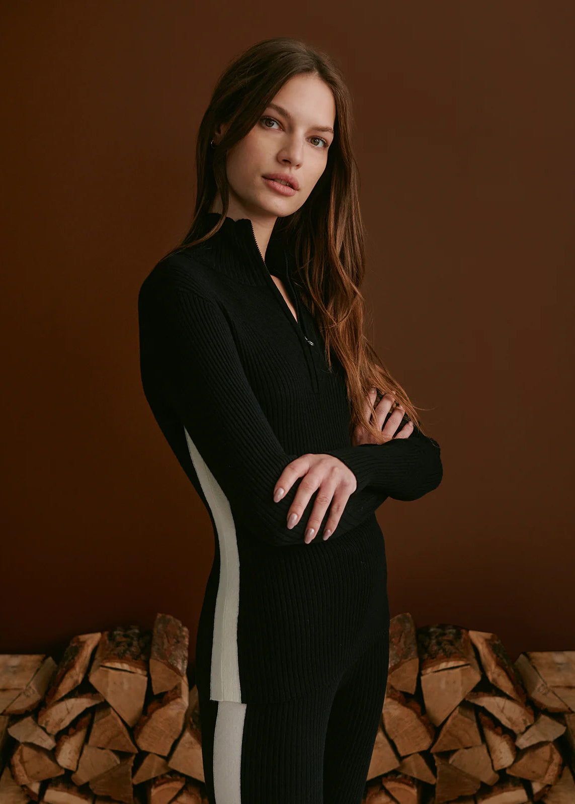 This half-zip knit is crafted from a soft viscose yarn with a fine rib finish. The perfect alpine base layer, it also features a contrasting side panel for an effortlessly elevated aesthetic.