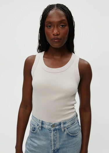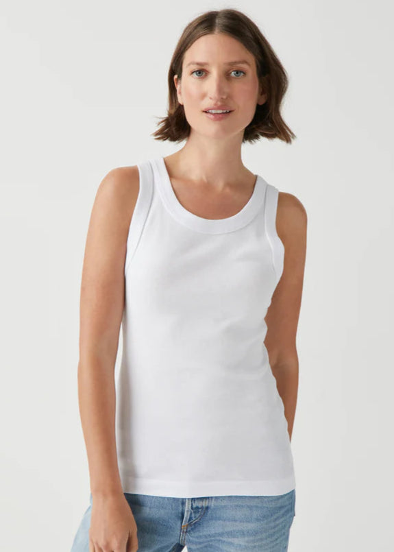 Available in an array of seasonal and classic solid colors, this fitted wide binding tank is featured in soft ribbed jersey. An everyday basic that's a must for the well-appointed wardrobe.