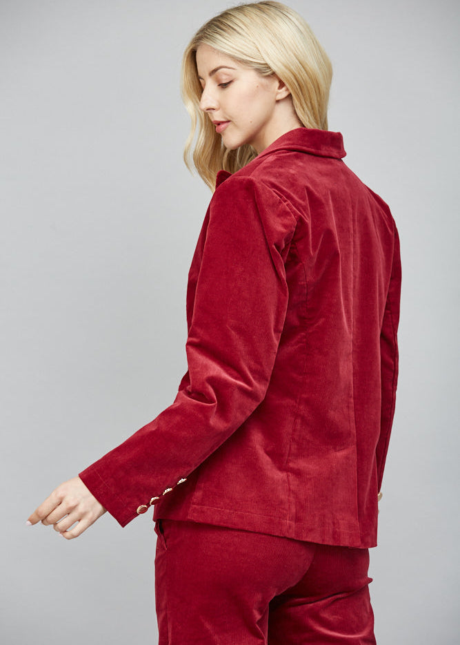 GOLD BUTTON TRIMMED CORDUROY BLAZER