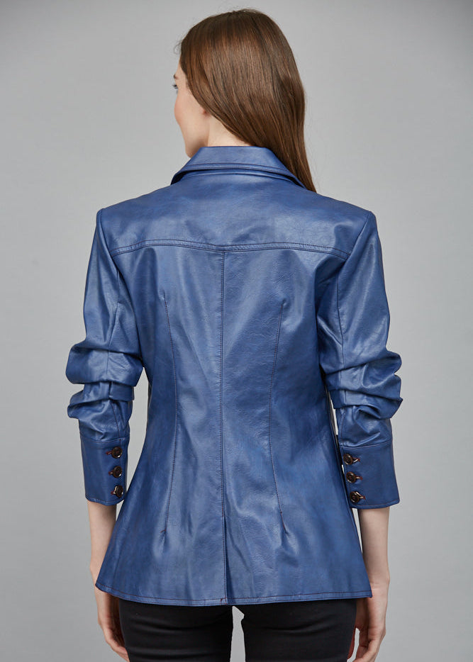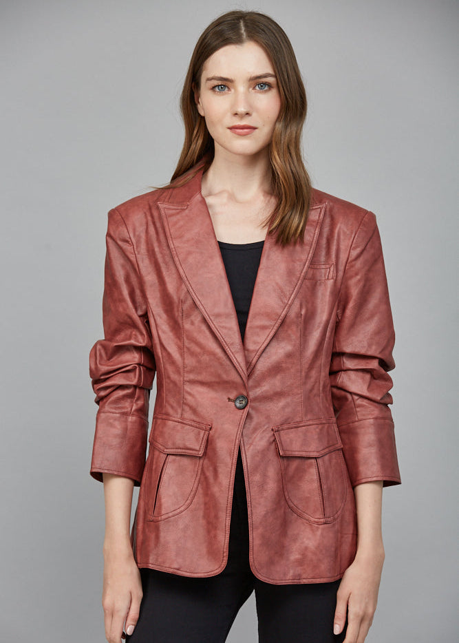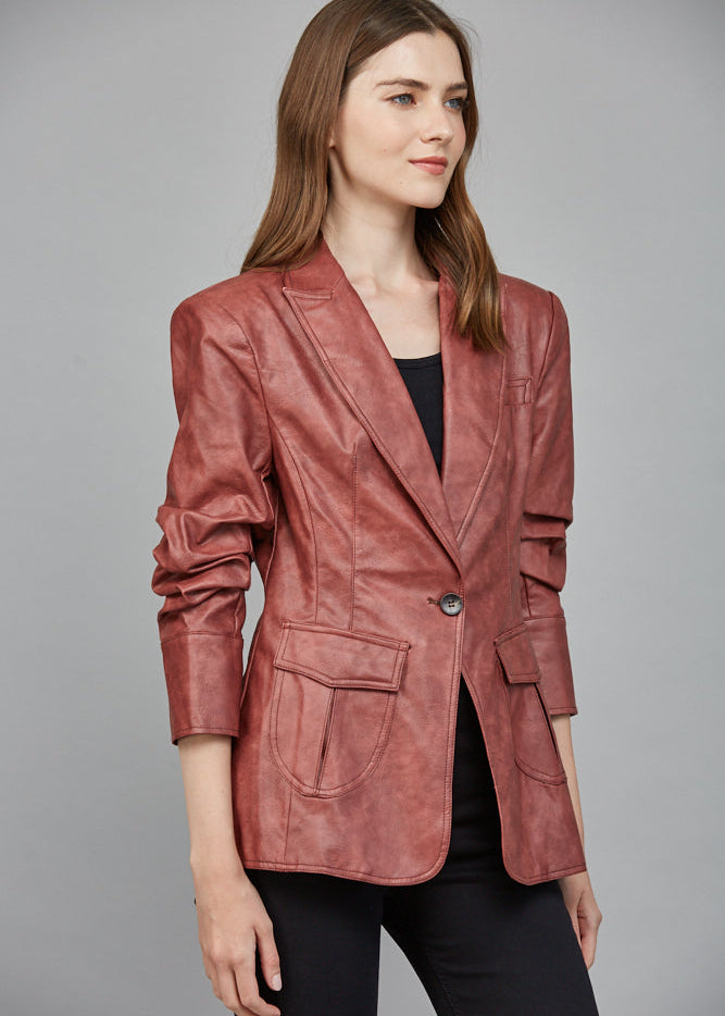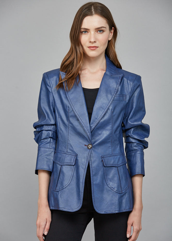 TWO FRONT FLAP POCKET DETAIL SCRUNCHED SLV FAUX LEATHER BLAZER