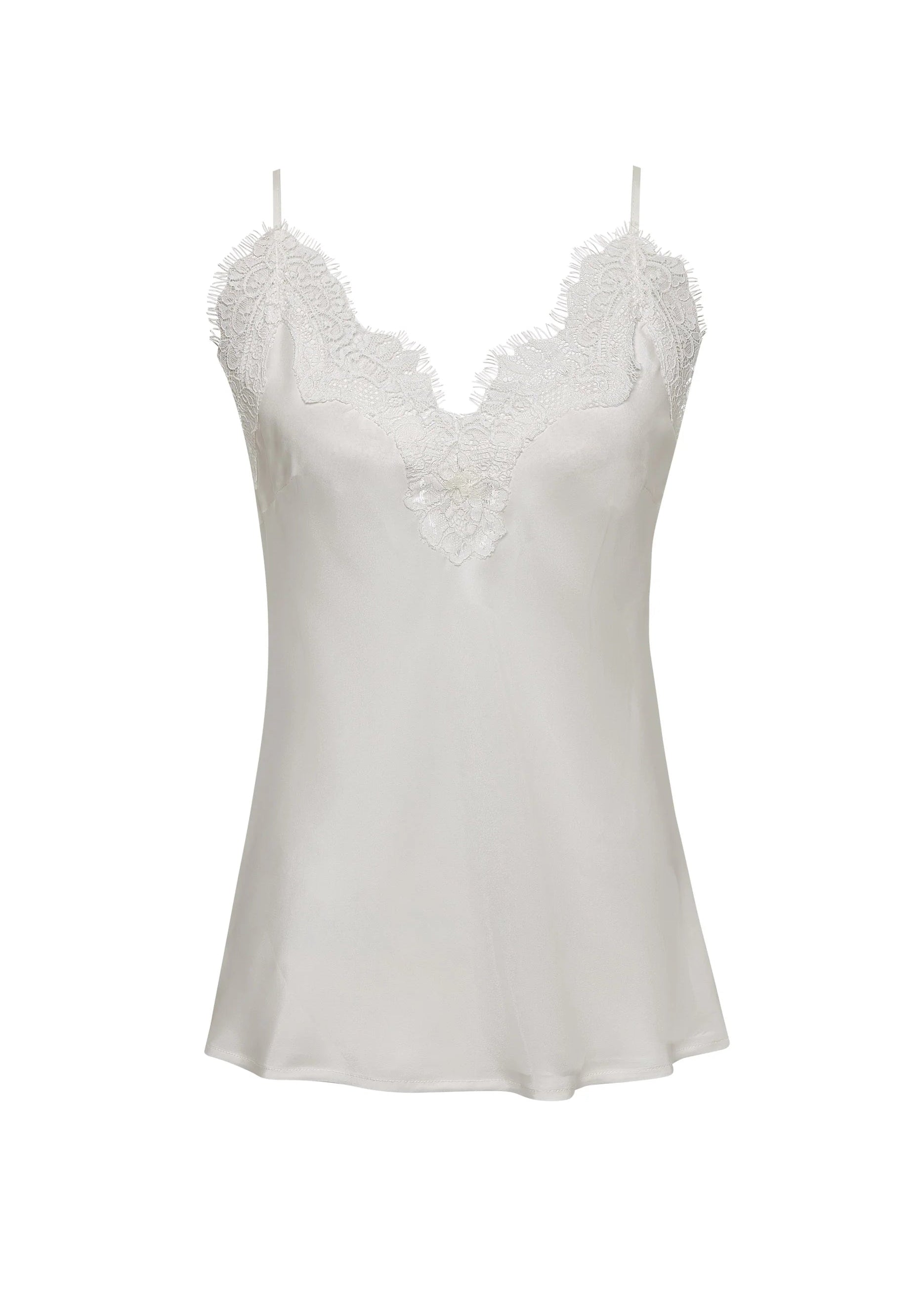 Wear it season after season, on its own, or layered. The patterned lace trim gives this silk camisole a soft feminine touch. Use the cami as a beautiful intimate, cute summer top, or luxurious undershirt.