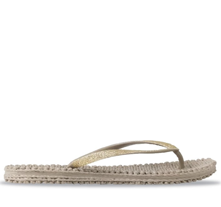 This is the perfect flip flop. Our cheerful flip flips are made with air rubber, with induced air to make it light weight and flexible. They are extremely comfortable with their patterned insole, creating a gentle massage effect. This style comes in all the colors of the rainbow, with the thong strap decorated with beautiful glitter. Our flip flops are an absolute must have, because of its comfortable fit and great appearance it is perfect for a walk on the beach, or any other summery occasion.