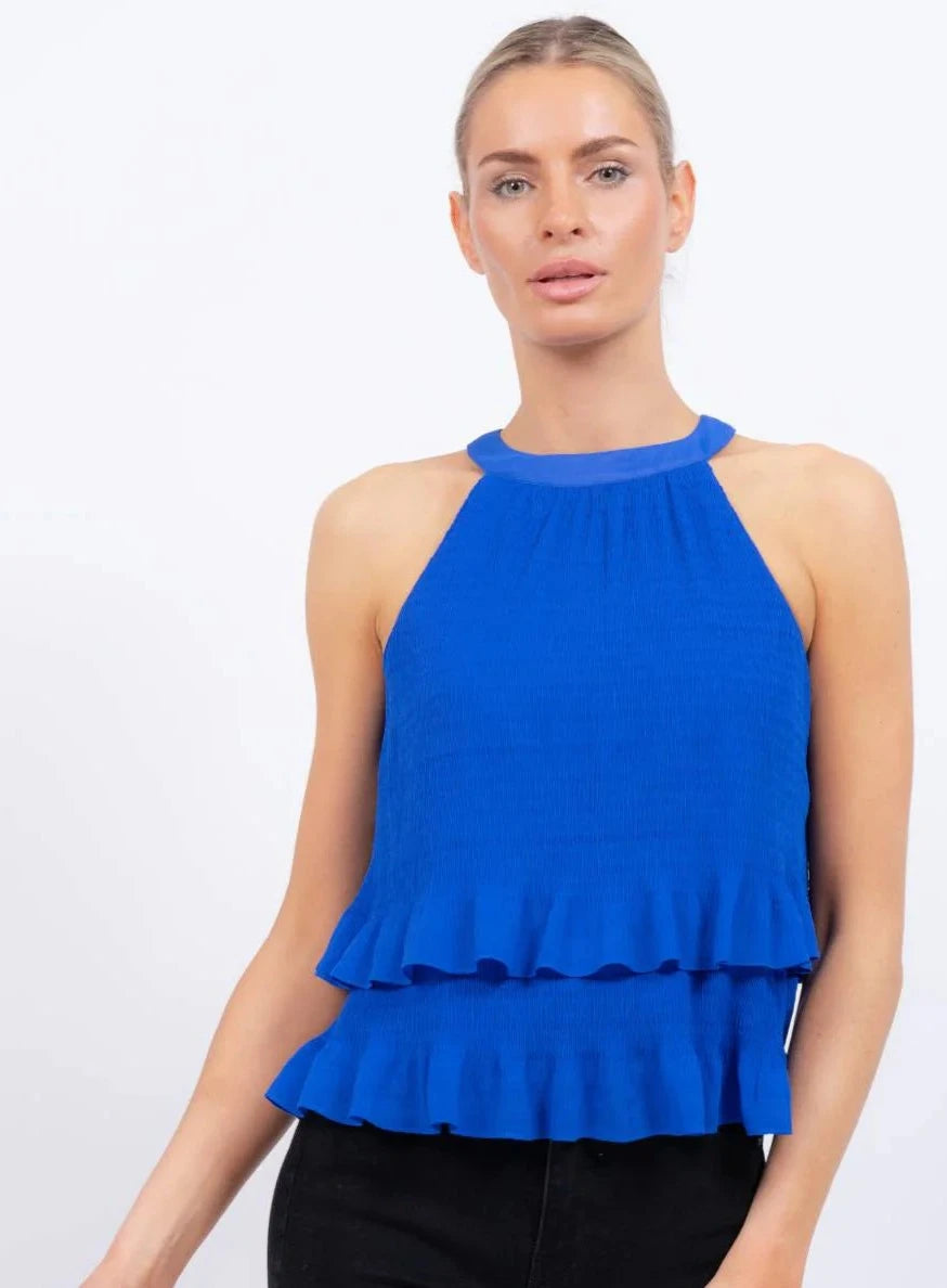 A beautiful layered halter top that flatters the waist. Pair with any sexy bottom to finish off this top.
