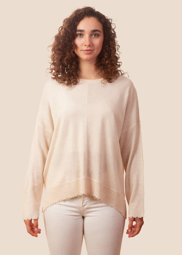 Oversized long-sleeve Crew neck top with Center seam and Ripped hem detail.