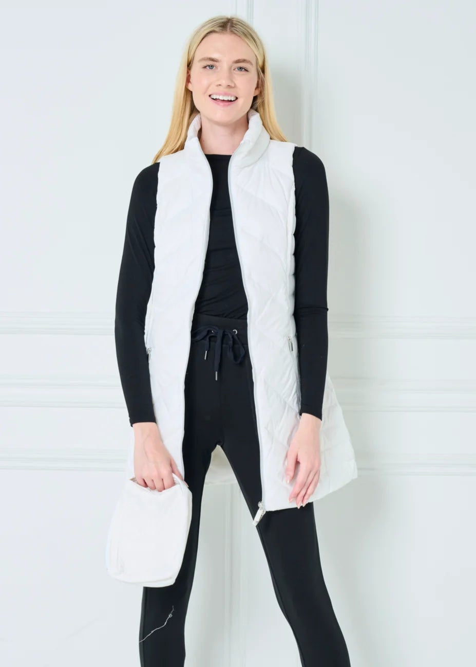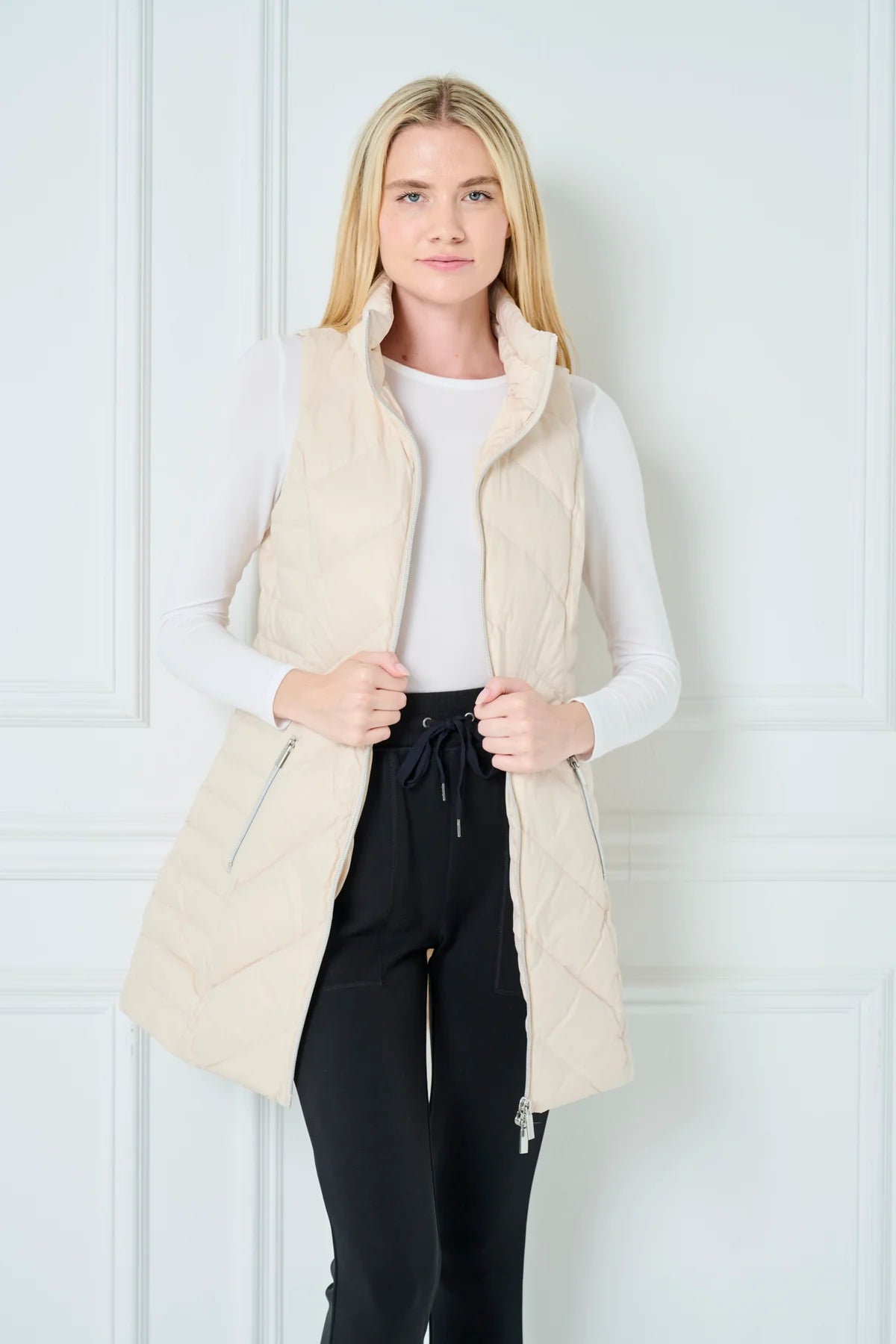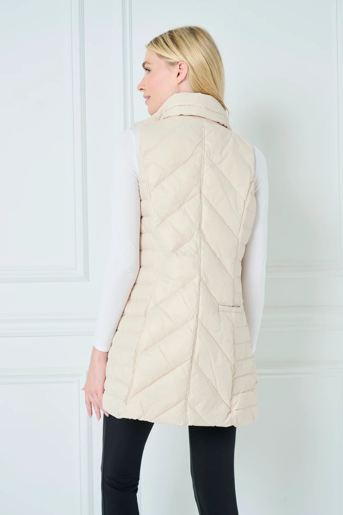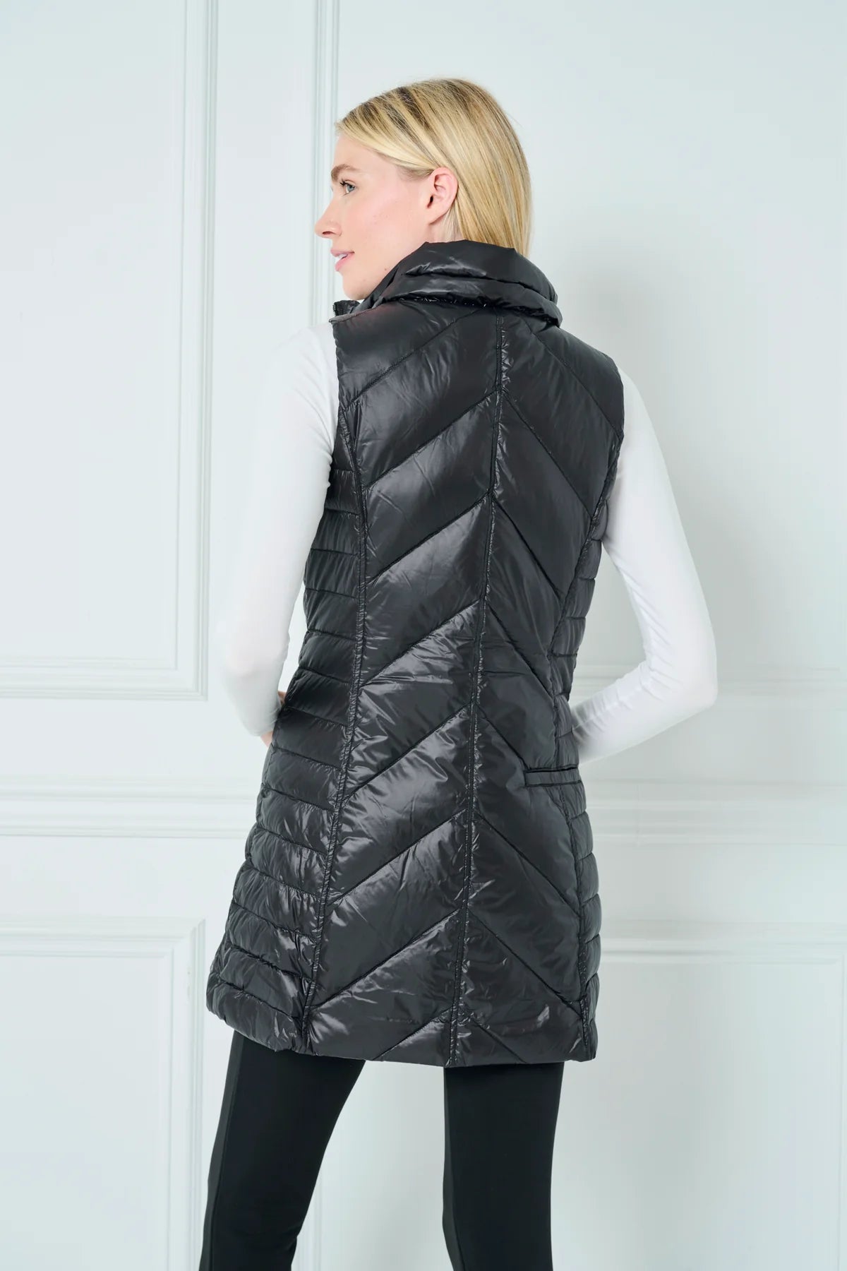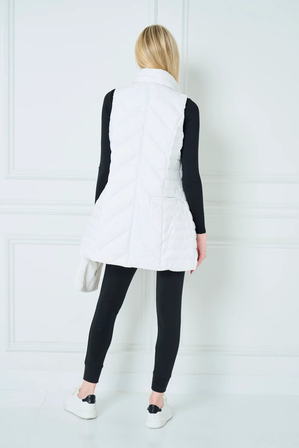 The Chevron Quilted Vest is a go-to piece making it stylish and practical. The vest features three pockets making your outdoor activities that much easier. It's the perfect companion piece to layer for those cold weather days. Grab for a walk to get coffee or walk the dog. If you're looking for warmth, wear with layers.