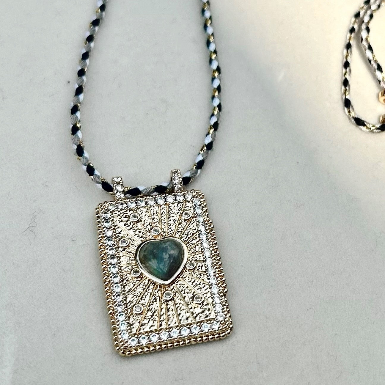 Lurex cord with lab heart pendant.