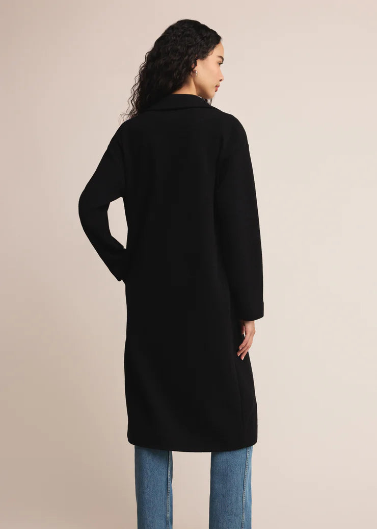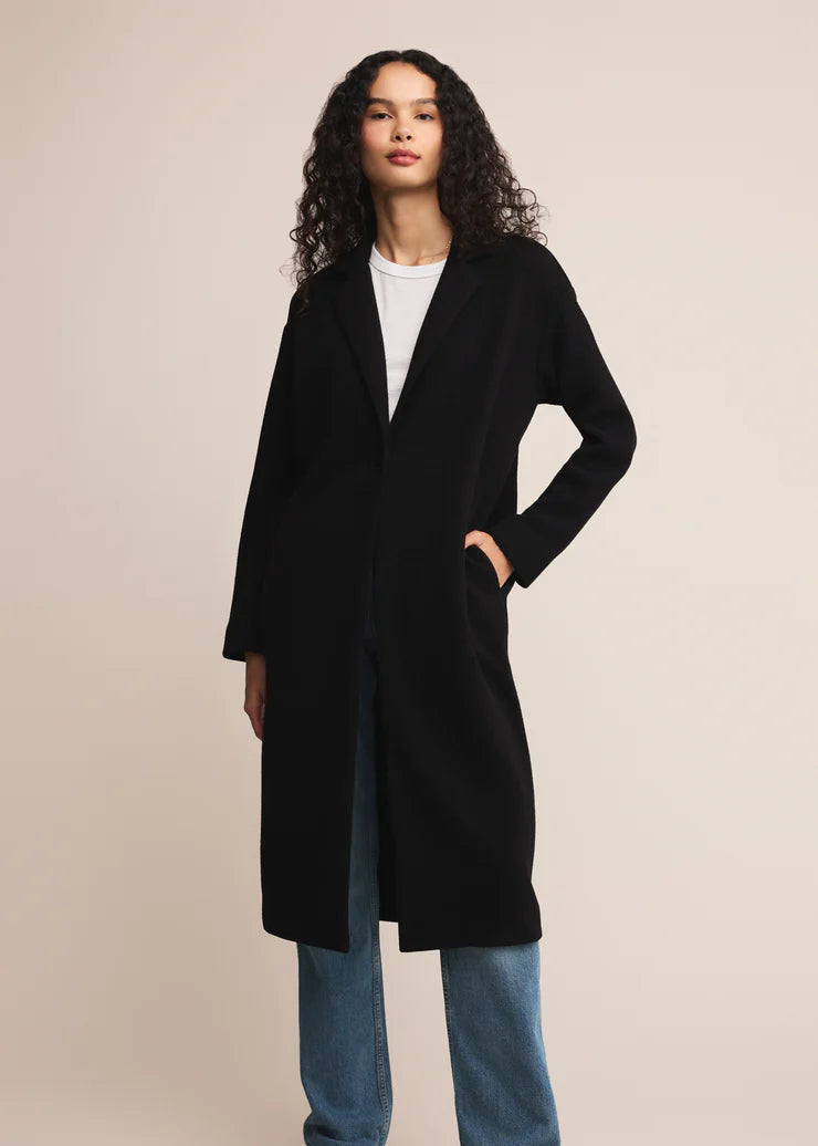 This best-selling coat is all about laid-back sophistication, designed in a heavier textured knit with a notched collar and oversized fit. Easy to slip on over sweaters or sleek layers, it’s the piece that makes every outfit feel complete.