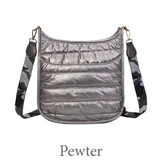 Adjustable cross body strap. Gold-tone hardware and inner zip pocket.