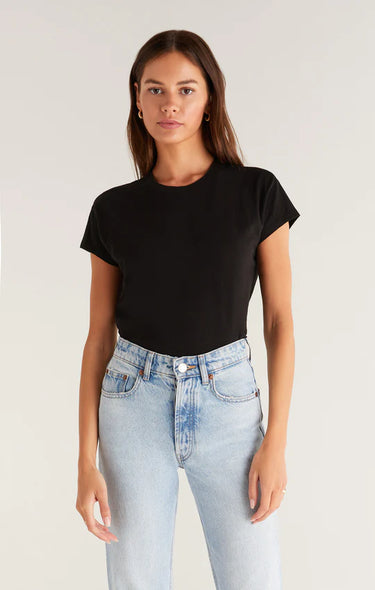 Your closet needs the Modern Slub Tee! This is a casual wardrobe base-layer essentially made from our classic Cotton Slub Jersey fabric. This effortless top is meant to hit at the waistband of high-rise styles and can be worn tucked or untucked. This tee is meant to fit closer on the body, so if you prefer a looser fit, we recommend sizing up.