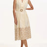 Delicate appliqué cutouts and a scalloped hemline elevate this airy shirtdress, while an integrated belt defines the silhouette with refined elegance.