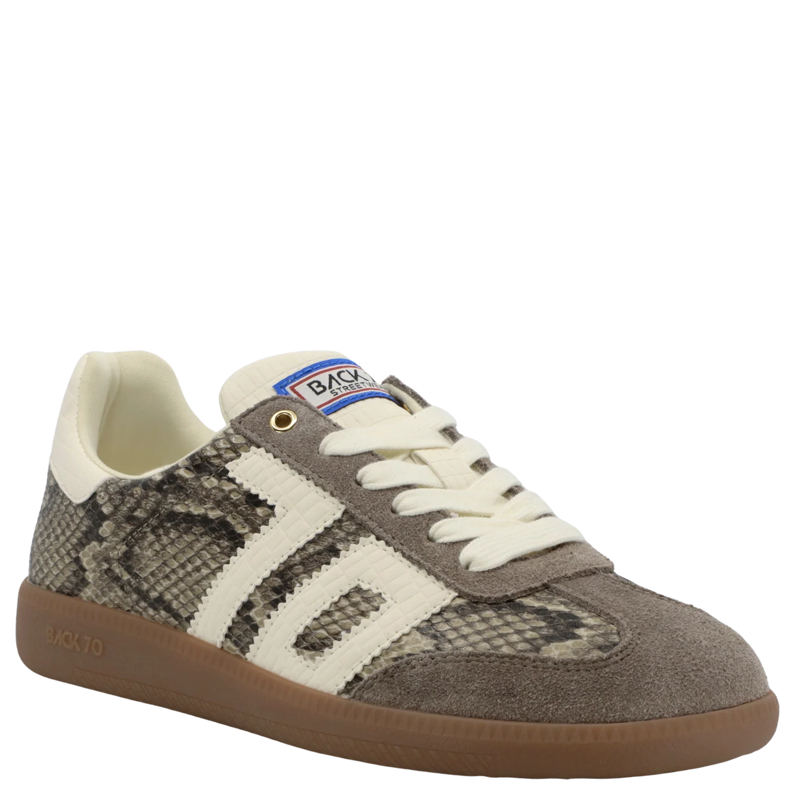 The Cloud S brings a softer spin to the snakeskin sneakers with a velvety suede toe cap and laces that lean into laid-back, boho charm. Crafted in Italy with genuine leather and vintage touches like a gum rubber sole, this sneaker is all about a subtle statement. The earthy color palette, snakeskin print and signature Back 70 icon give it effortless edge without trying too hard.