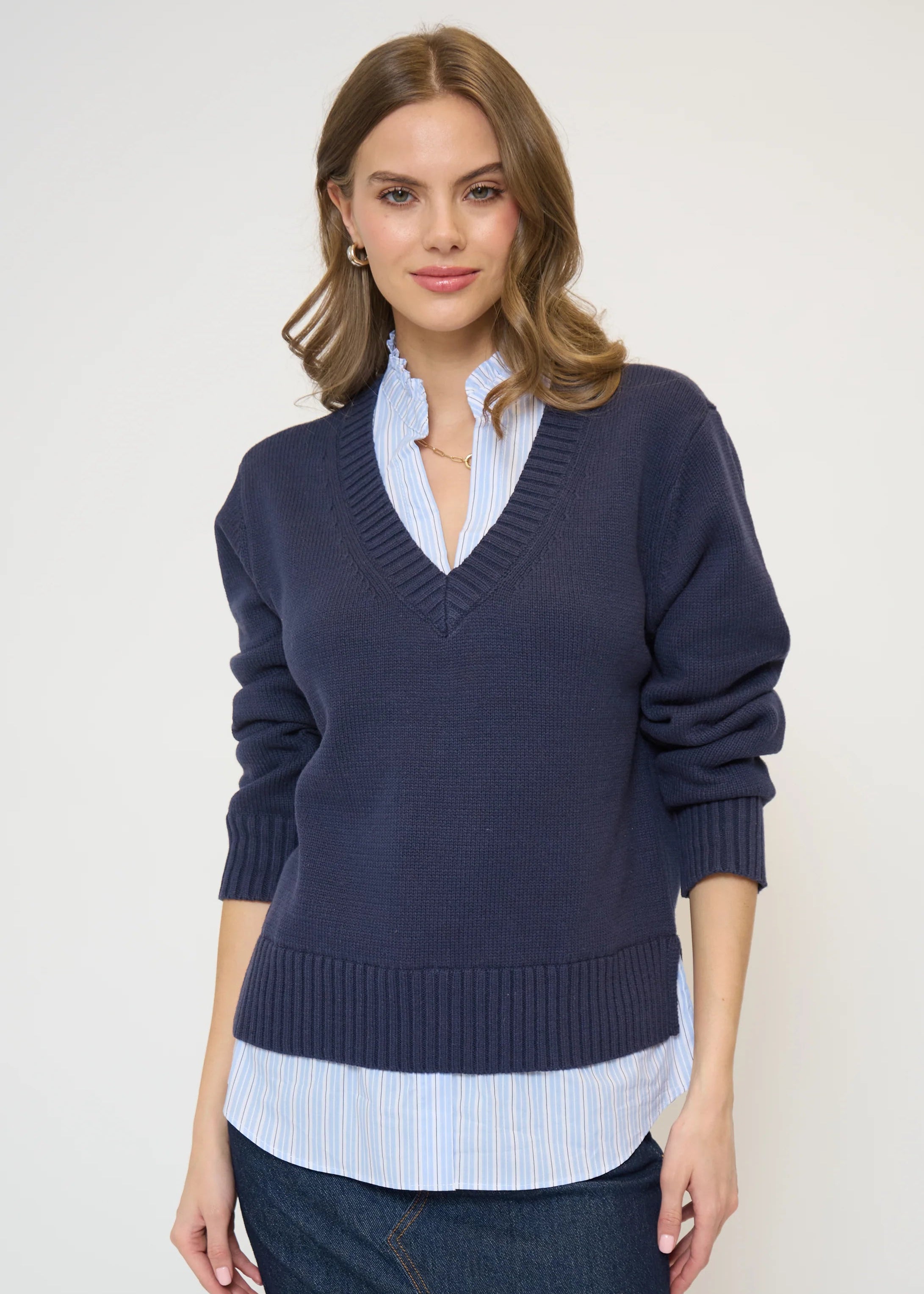 Meet your new wardrobe MVP: the Maisie Mandarin Collar Twofer. Double the style, double the fun—this clever two-in-one piece layers effortlessly for maximum versatility. The chic mandarin collar adds an unexpected twist to your everyday rotation, while the twofer design means you're always ready for whatever the day throws your way. Dress it up or keep it casual; either way, you're winning.