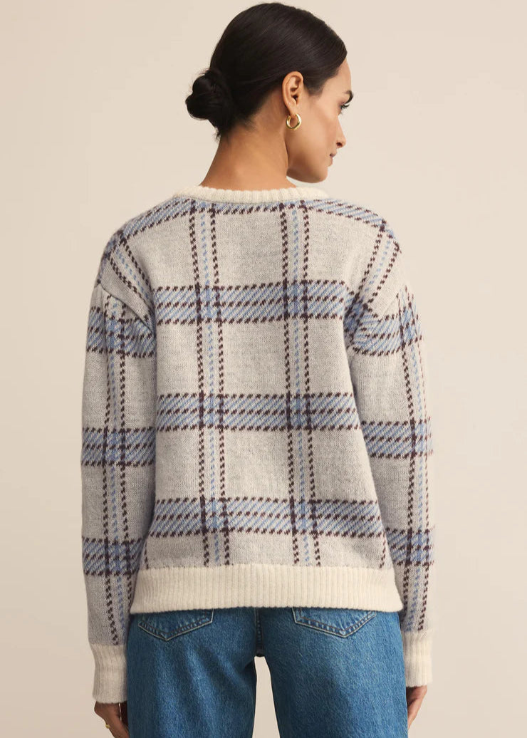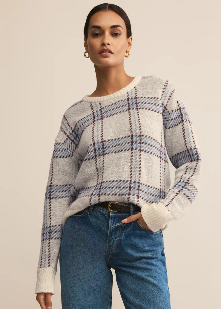 This plaid crew sweater strikes the perfect balance of cozy and refined. Crafted in an airy knit from light and lofty yarns, it delivers warmth without weight, the kind of comfort you’ll want on repeat.