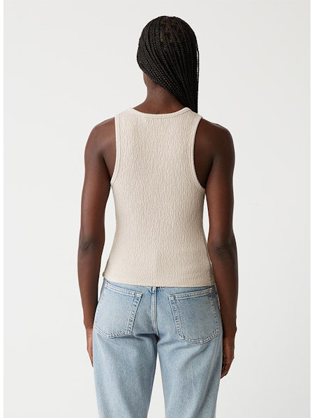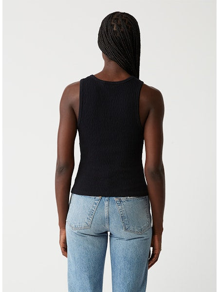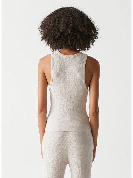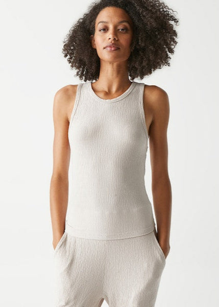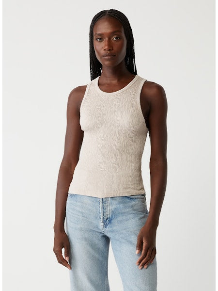 Kira is the perfect bodycon crewneck tank. Crinkle Knit fabric is made from a textured rayon blend.