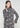 Black blouse with repeated print of white stars and leopards. High collar with subtle ruffle. Front button closure. Long sleeves finished with frilled cuffs.